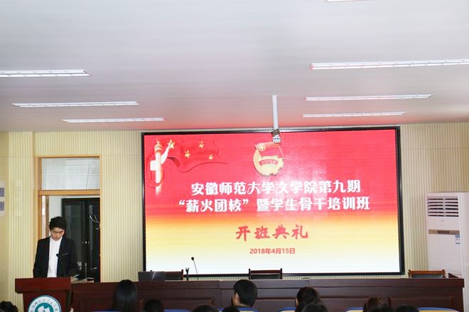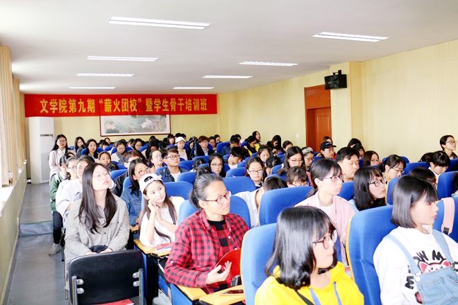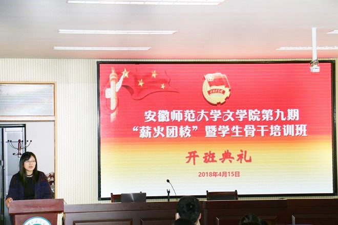 本网讯(文/黄晓珂 图/王众)团员精神传薪火,青年责任勇担当。4月15日下午,文学院第九期“薪火团校”暨学生骨干培训班开班典礼在文学院行政楼三楼报告厅举行。文学院党委副书记戴和圣、团委副书记徐雅萍出席开班典礼。开班典礼由培训班班主任、2017级辅导员赵静主持,培训班全体成员参加。