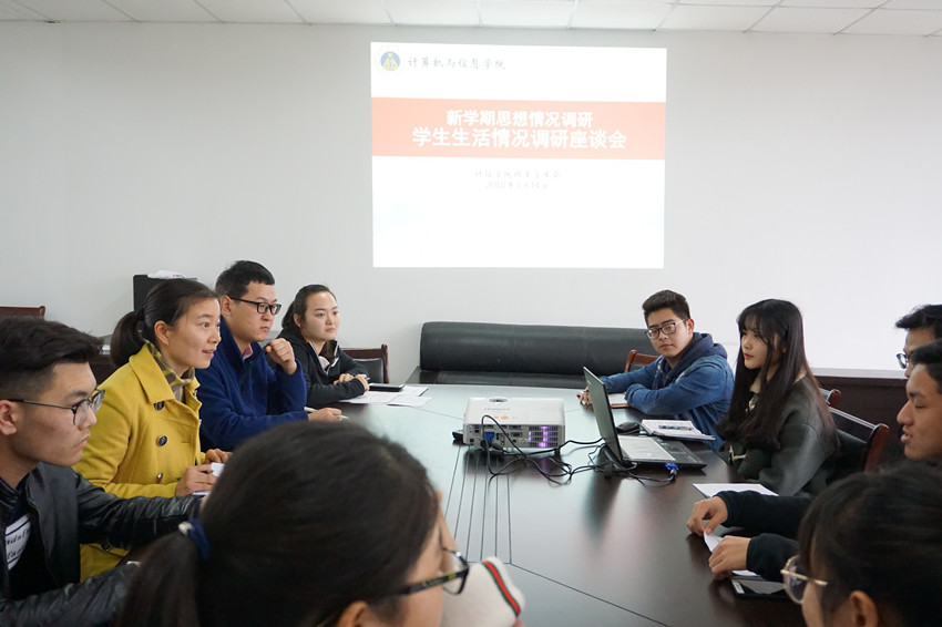 本网讯(计信学院 王程)为深入了解和及时掌握学生思想状况,开学伊始,计算机与信息学院通过召开座谈会、走访宿舍、书面征集意见、寝室民主生活会、谈心谈话等方式广泛征求学生诉求,多渠道了解学生学习和生活情况,以增强学院工作的针对性和实效性。