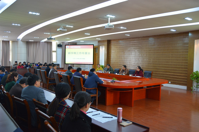 罗永龙通报了领导班子成员分工、系(部、中心)主任安排及其他人员岗位分工等情况,结合学校党政工作要点布置了学院教学与科研等重点工作任务。张园园和储倩结合分管工作分别作了传达和布置。