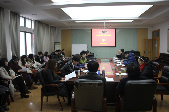副书记张韬首先向与会人员介绍了2017年学院学生工作总结及2018年学生工作思路。全面总结了学院在2017年学生工作中取得的成绩,指出存在的问题。会上,张韬围绕学生思想引领、学生支部建设、队伍建设、学院品牌项目建设等问题和与会人员进行了交流。张韬指出,新的一年的学生工作要立足学校发展大局和学院特色,以问题为导向,以学生综合素养提升为目标,创新工作方法,扎实推进各项工作。