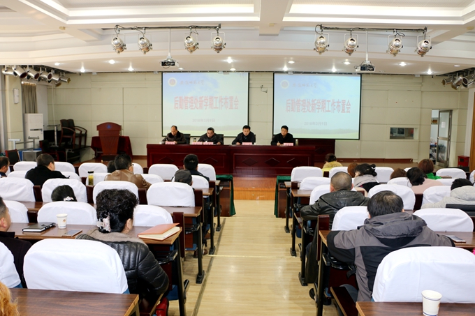 ,后勤管理处召开新学期工作布置会,谋划推进新时期后勤工作。后勤管理处领导班子成员、科室中心项目经理以上人员、社会企业负责人及全体事编员工参加会议。会议由后勤党委书记孔德新主持。
