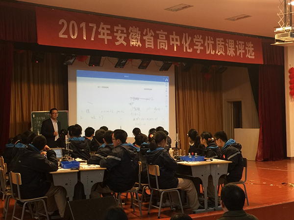 本网讯(附中 阚道银)11月28日至30日,安徽省2017年高中化学优质课大赛在芜湖市安徽师大第二附属中学举行,附属中学青年教师张占丽所授课题《运用数字化实验解析中和滴定曲线》获省一等奖。