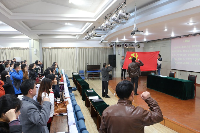 会议伊始,全体党员重温入党誓词,大家面向党旗肃立、高举右拳,在院党委副书记兼组织委员汪贻洋的带领下,齐声宣读入党誓词“我志愿加入中国共产党,拥护党的纲领,遵守党的章程……”铿锵有力的宣誓声,响彻大厅。余国升希望全体师生党员不忘初心、坚定信念,在学院各项工作中积极发挥党员先锋模范作用。