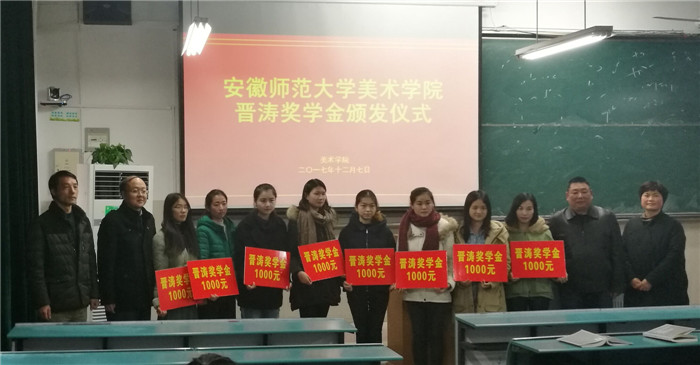 本网讯(美术学院)12月7日,美术学院首届晋涛奖学金颁发仪式在花津校区3号教学楼101教室举行。晋涛助学金”资助者、芜湖市小熊家便利店总经理晋涛,美术学院党委副书记张韬、副院长陈琳,专业教师朱德义,美术学专业学生及辅导员等共同参加了颁发仪式。