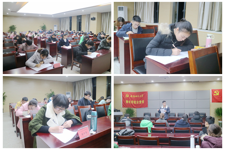 在十九大知识竞赛中,分党校组织学生党员、入党积极分子学习十九大精神,深刻领会党的十九大提出的一系列新思想、新论断、新要求、新目标、新提法,对有关新时代社会主要矛盾的变化、文化自信及四个自信、社会主义核心价值观、新发展理念、“四个全面”等论述进行了重点考察。分党校组织培训班学员统一在理化楼304答卷并组织老师参与阅卷,学员们参与积极性很高,其中费虹靖、董程秋、许蓉、陈元霞等多位同学表现突出,取得95分以上的极好成绩。可见培训班的学员们对十九大的相关重要论述都有详尽、认真的研读。