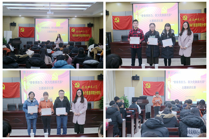 为强化培训班学员的责任担当意识,时刻铭记党员与入党积极分子的身份,分党校在理化楼335组织开展了“青春勇担当,我为党旗添光彩”主题演讲比赛。比赛邀请自动化本科生党支部书记、培训班副班主任秦瑾琼以及自动化本科生党支部的过劲劲、徐琴琴、王晓冉等正式党员担当比赛评委,学生党员培训班、入党积极分子培训班的学员积极参与比赛,比赛精彩纷呈,现场反映热烈。比赛中,数十位选手各展其能,演讲风格迥异,展现出大学生骨干青春洋溢、爱党爱国的一面,作为学生党员和入党积极分子,他们为自己的身份骄傲,更深知自身的责任与担当。经过激烈的角逐,金玥、薄新志、潘婷等同学脱颖而出取得一等奖的好成绩,评委秦瑾琼老师也在最后的总结讲话中对比赛及参赛选手给予高度赞扬!