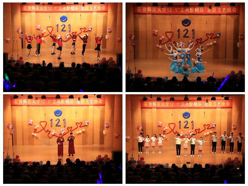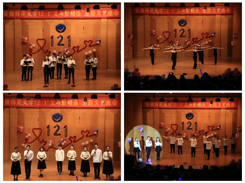 “121爱与艾相连”主题文艺晚会由生科院、音乐学院、校医院、芜湖市疾控中心、镜湖区疾控中心主办,大学生保健协会、音乐爱好者协会、舞蹈爱好者协会承办,用大学生喜爱的形式宣传了艾滋病的防范知识,增强了对艾滋病危害的认识和防艾意识,激发了争做防艾志愿宣传的热情,他们纷纷转发防艾晚会微信,参与防艾宣传。