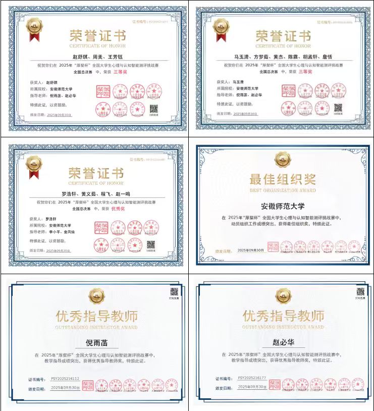 【振兴计划师大行】教育科学学院心理学系师生在首届“厚粲杯”全国大学生心理与认知智能测评挑战赛中喜创佳绩