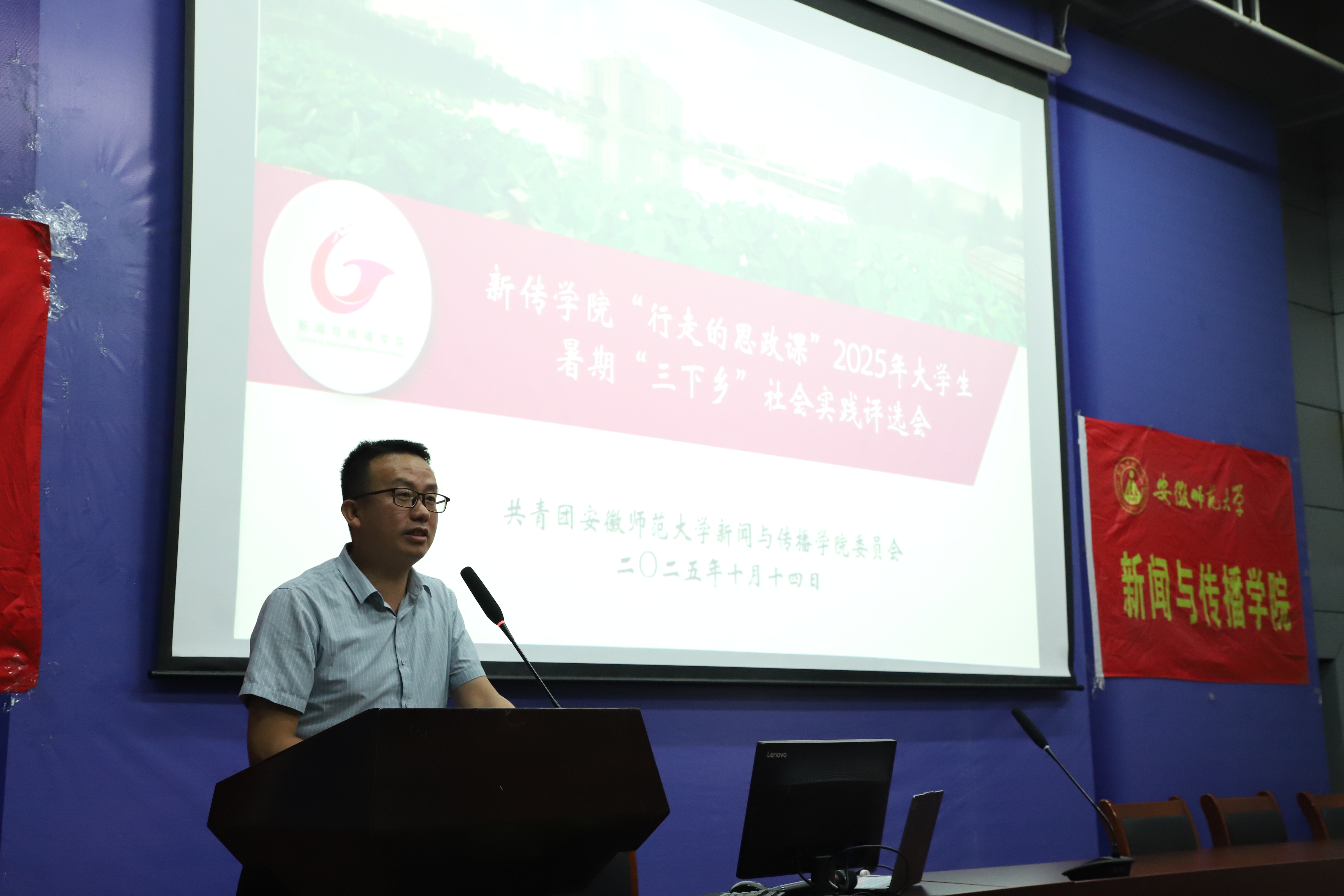 最后,吴青山作总结发言。他对各团队的实践成果给予高度肯定并鼓励同学们“要勇敢地走出去”,并指出:“真正的成长,是在接触现实、思考问题的过程中不断积累的。”他特别寄语2025级新生,期待大家在来年的暑期社会实践中积极投身广阔天地,用行动践行学院“求真、至善、尚美、笃行”的院训,展现新传学子的独特风采。