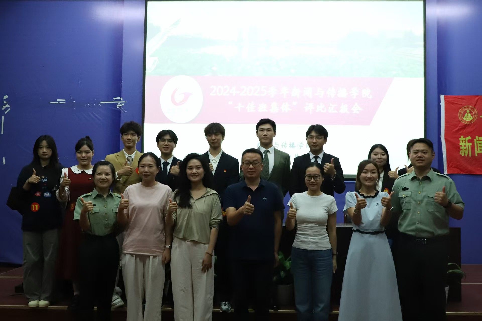 为充分发挥优秀班集体在立德树人工作中的示范引领作用,集中展现班级建设在护航学生成长方面的扎实成效,10月11日下午,新闻与传播学院举行2025年“十佳班集体”评比汇报会。学院党委副书记吴青山、全体专兼职辅导员出席并担任评委,2022级至2024级各专业主要学生代表共同参会。