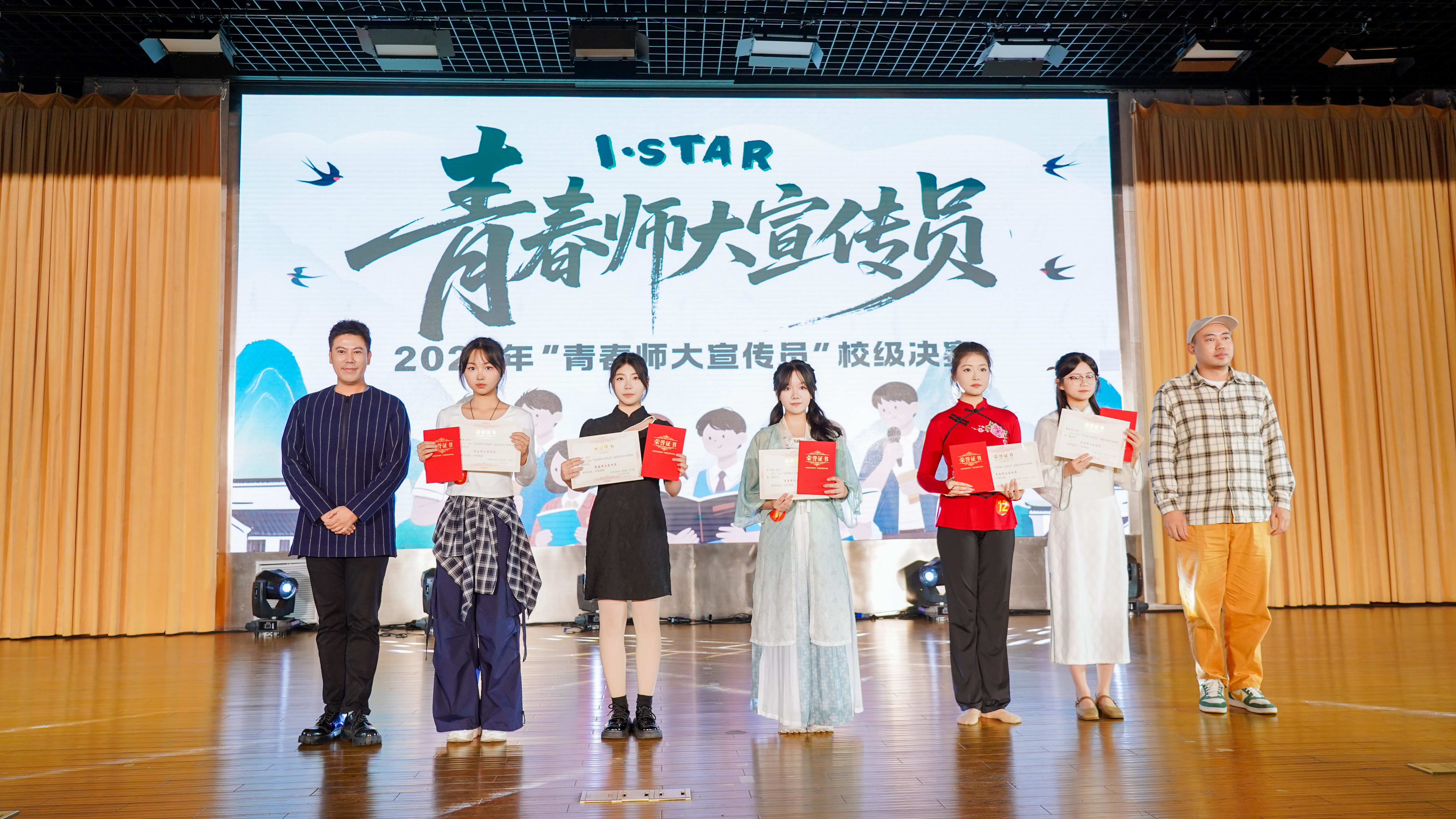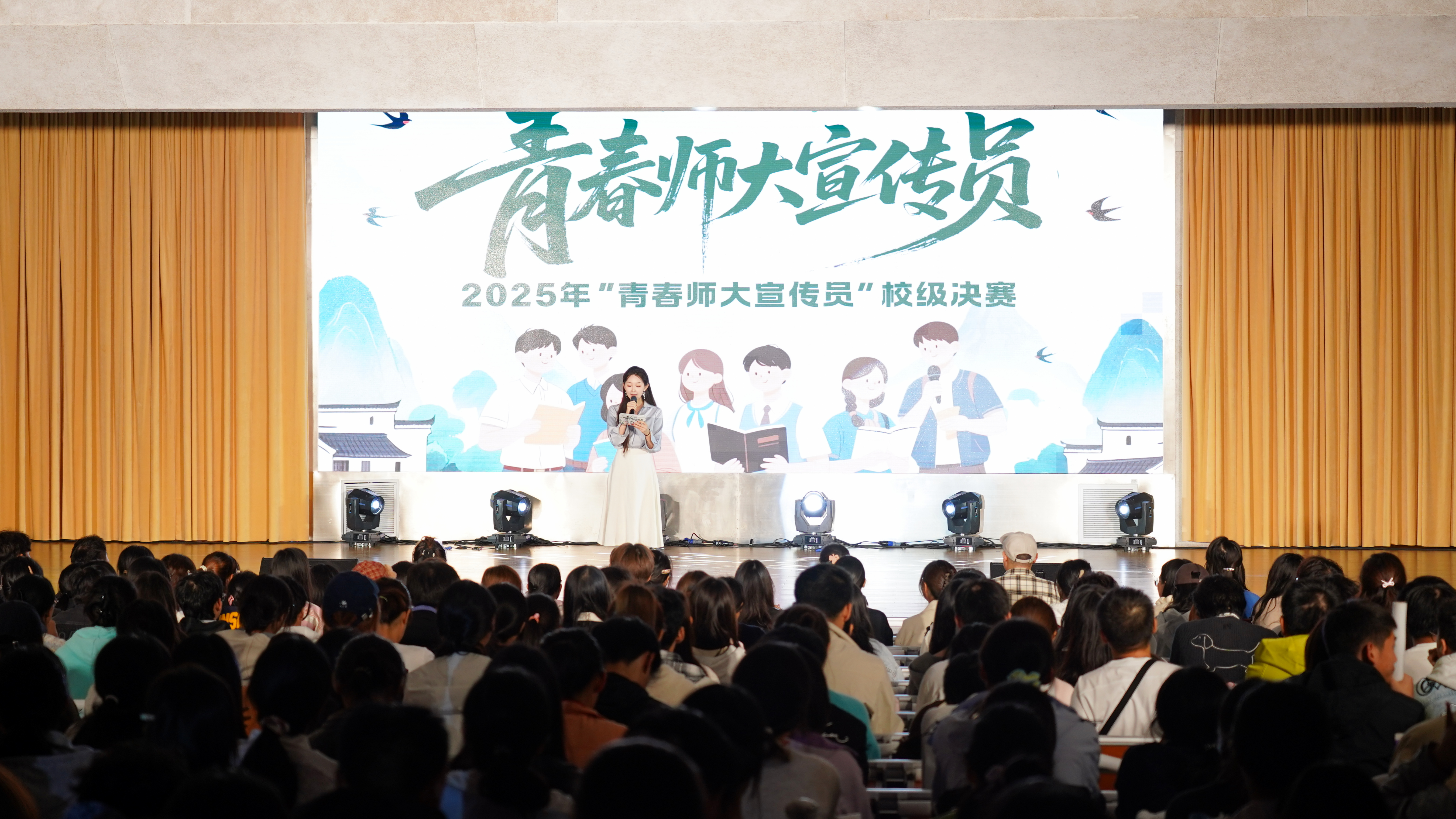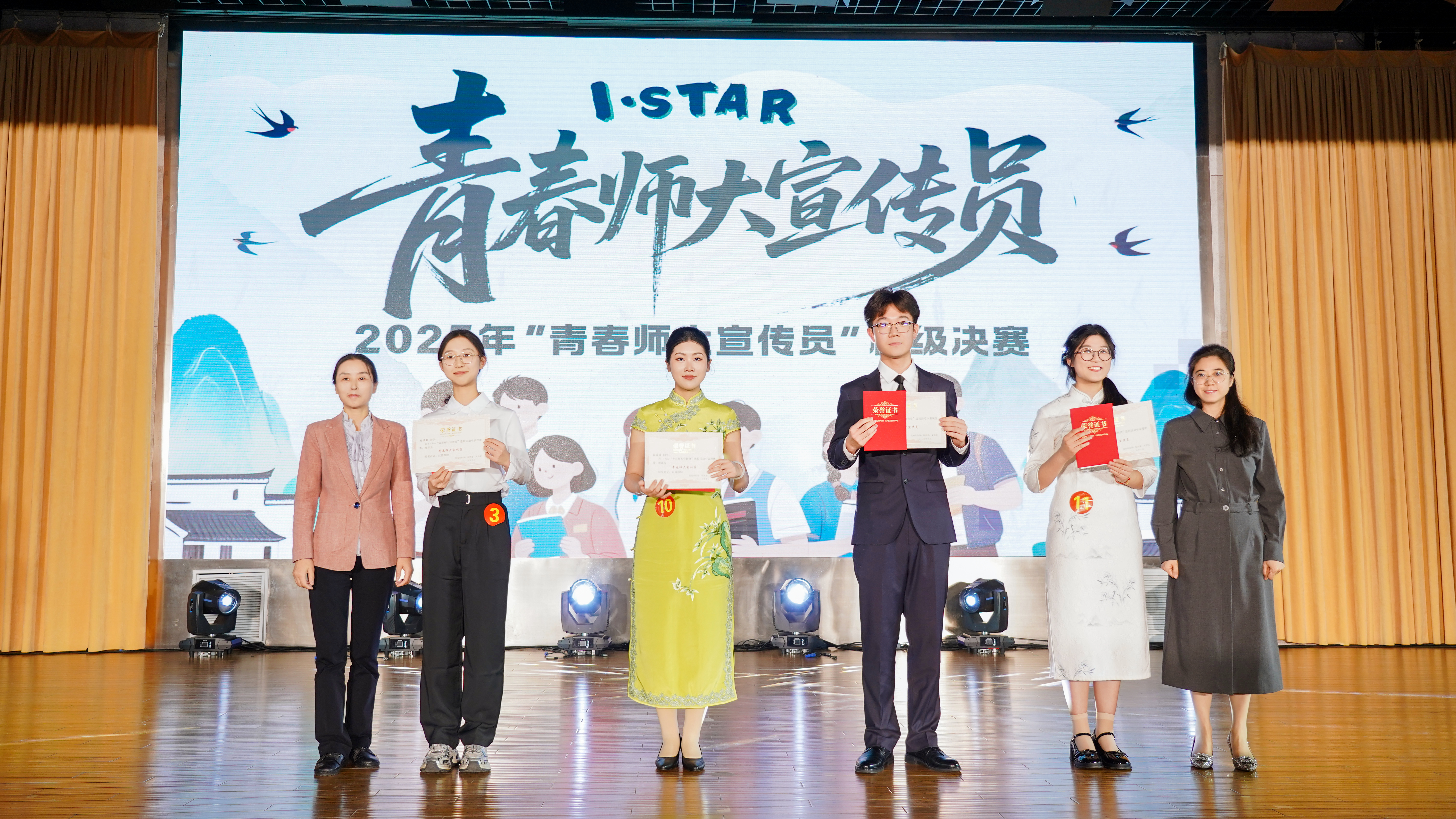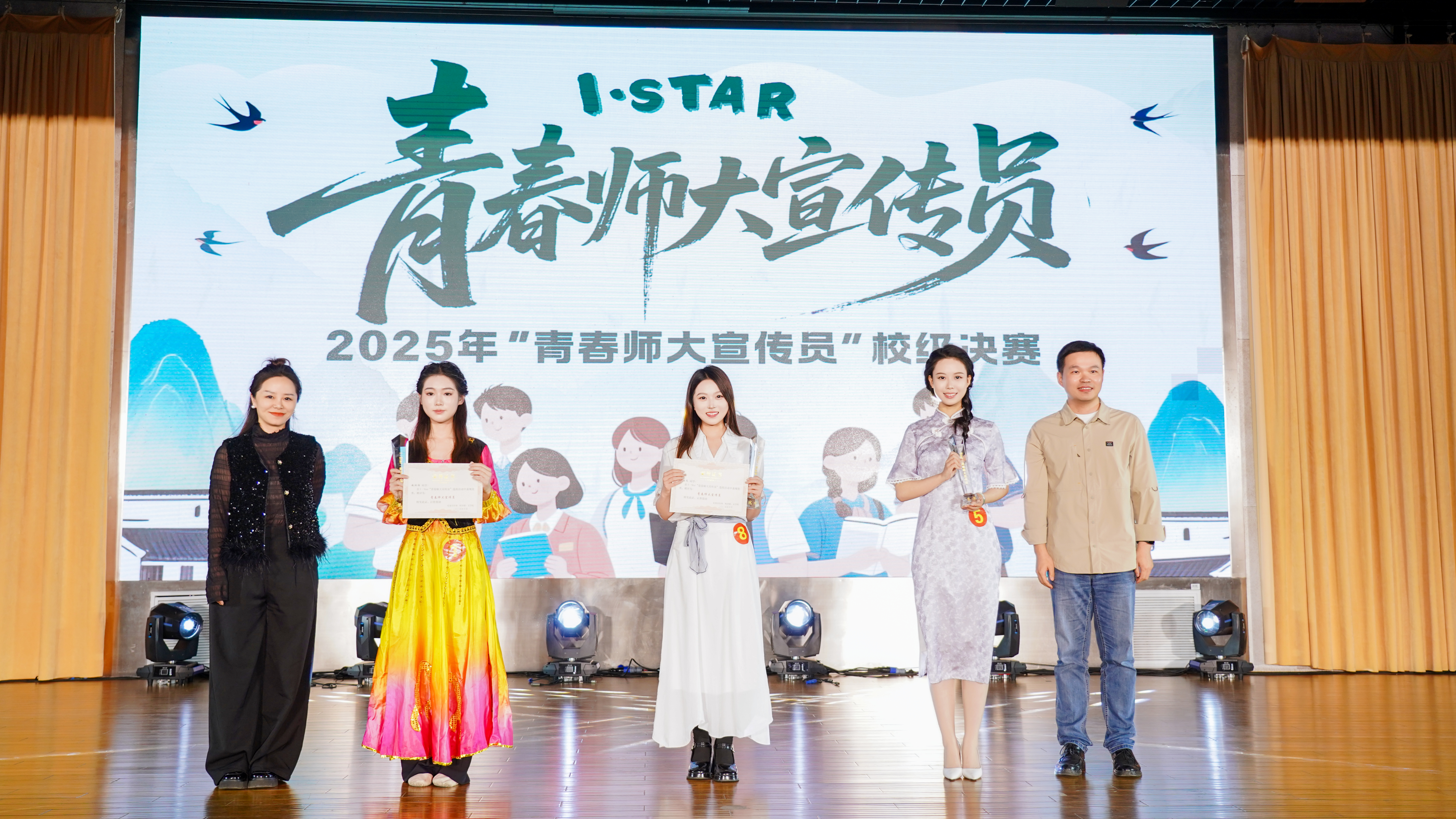 活动由党委宣传部、校团委、文学院联合主办。12名选手围绕“讲好师大故事、传播青年声音”的主题,以青春视角解读江淮文化,用生动表达传递时代新声。在主题演讲环节,来自2022级思想政治教育专业的李艾以“纸载千秋见匠心”为题,深挖宣纸文化内涵,生动诠释非遗技艺在时代浪潮中的生命力,让“纸寿千年”的匠心精神跃然眼前;而作为亳州籍新生的2025级化学(师范)专业的赵欣怡,则是以“亳州不‘薄’”为题,串联起家乡两千余年的文化脉络,让古城魅力直抵人心……同学们紧扣安徽文化脉络,从徽派建筑到非遗技艺,从历史名城到科创高地,内容涵盖文化传承、科技创新、社会实践等多个方面。才艺展示环节同样异彩纷呈,尽显江淮文化魅力。舞蹈《小船谣》以柔美姿态演绎江淮灵动文脉;相声贯口《报菜名》以利落口齿展现省会合肥“大湖名城、创新高地”的独特活力;诗文吟诵《李白与宣州》将诗意与历史融合,令人回味无穷……选手们或舞或歌或诵,将安徽文化与个人风采融为一体。经过激烈角逐,赛事最终评选出一、二、三等奖,并授予12名选手“青春师大宣传员”称号。