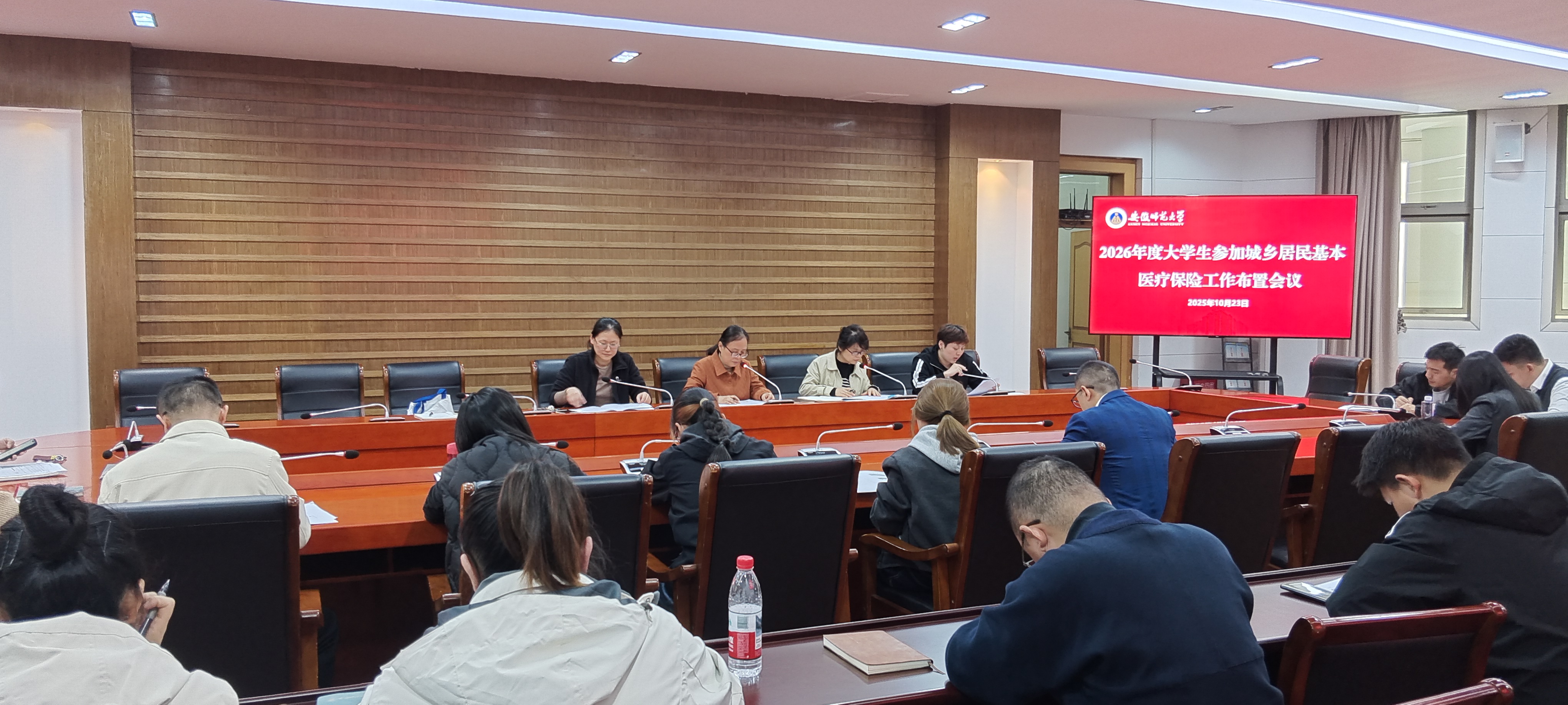10月23日下午,校医院在花津校区会议中心第一会议室召开我校大学生参加2026年度城乡居民基本医疗保险工作布置会。会议由校医院院长储倩主持,各学院、图书馆、天门山书院、财务处、校医院等单位负责医保工作同志及镜湖区医保局医保负责同志参加了会议。
