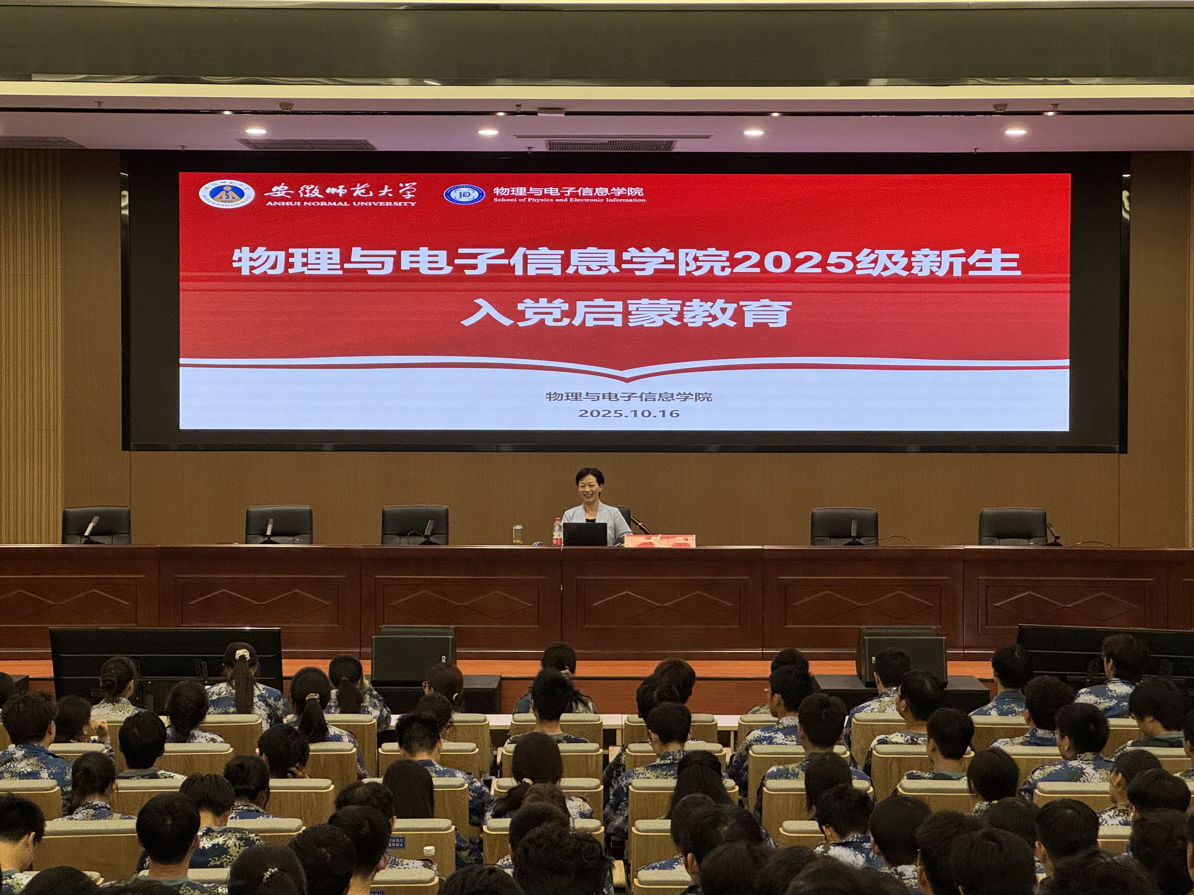 近日,物理与电子信息学院党委在理科大楼报告厅和文典楼西侧报告厅分两场举办2025级新生入党启蒙教育活动。学院2025级全体新生共679人参加。学院党委书记宋静、党委副书记凌从祥分别担任主讲人。