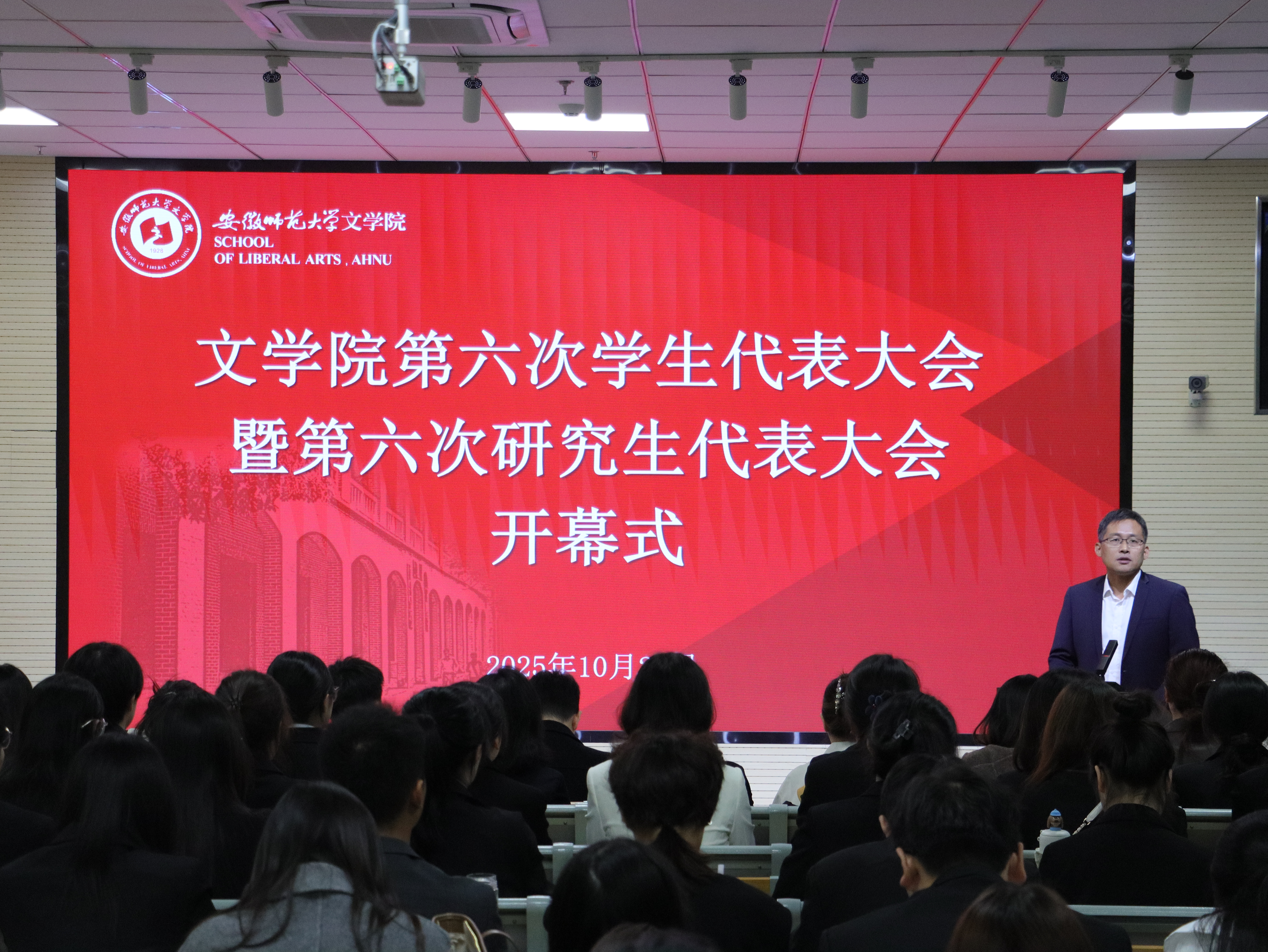 大会在庄严的国歌声中拉开帷幕。左方敏作开幕式致辞,他高度肯定了文学院近年来学生会研究生会在工作中取得的显著成绩,并对全体出席代表提出殷切期望,要坚定理想信念,做时代精神的引领者;要练就过硬本领,做勤学笃行的实干者;要牢记服务宗旨,做广大同学的贴心人。就今后学团工作的重点任务,他提出要立足基础文明建设,注重文明礼仪修养,充分发挥寝室长的带头模范作用,切实抓好寝室卫生与安全工作;要大力传承与发扬文学院的优良传统品牌活动,持续促进“五四爱心学校”、“江南诗社”等特色社团的活力与发展,着力持续提升深受师生喜爱的话剧表演活动质量,不断丰富校园文化生活;要深耕学科竞赛与志愿服务两大领域,借助学院“一年级有班主任、二年级有双选学习导师,三年级有专业论文导师,四年级有就业指导师”的学习与就业指导一体化育人特色,鼓励同学们积极参与导师研究团队,投身于“挑战杯”、“互联网+”创新创业大赛、国家级大学生创新创业训练计划以及各类志愿服务工作中,在实践中锤炼本领,增长才干。