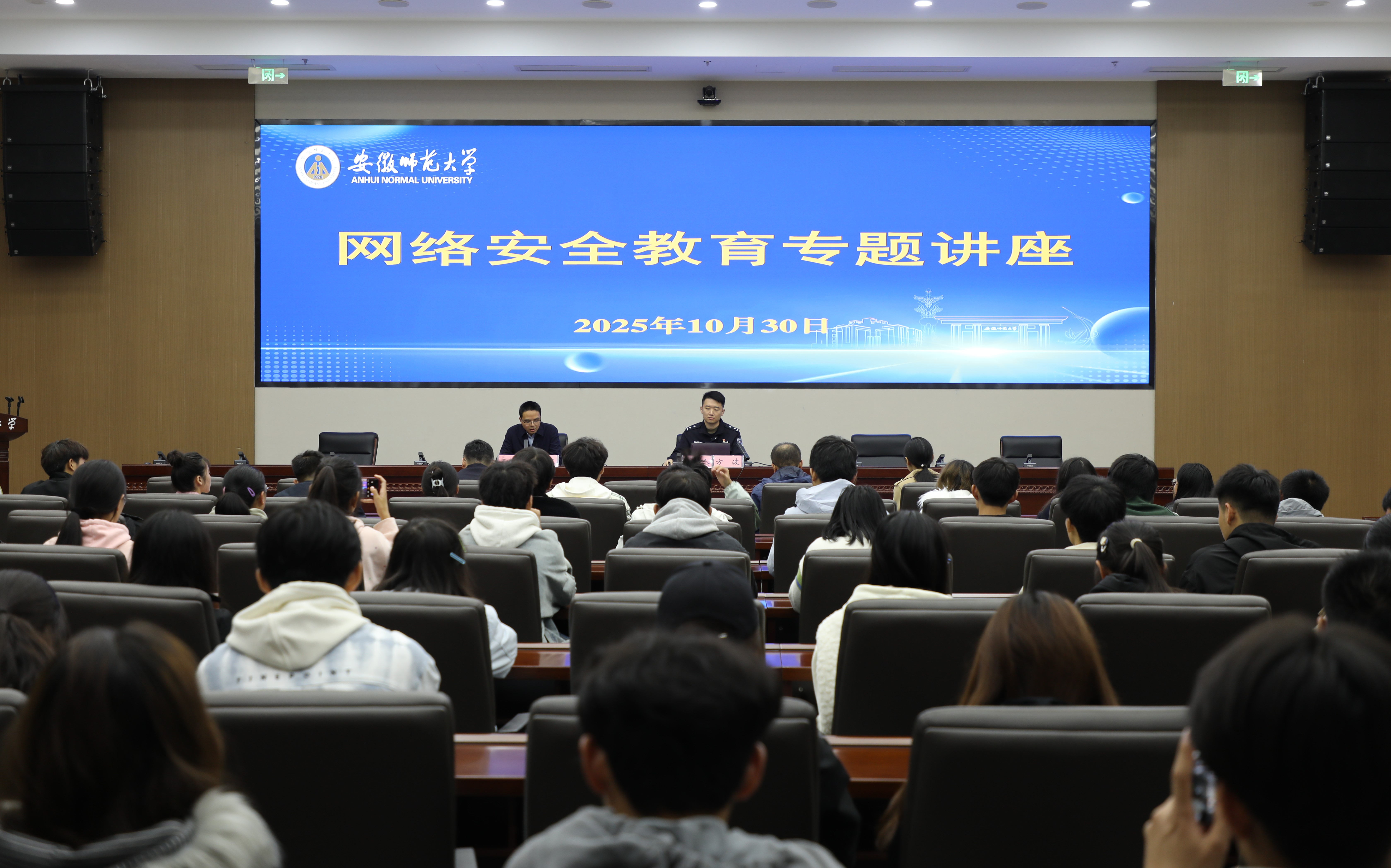 为提升学校师生网络安全素养,防范电信网络诈骗,营造清朗的校园网络生态,10月30日晚,学校邀请芜湖市弋江分局网安大队大队长杨祺、弋江分局网安大队民警方波来校作网络安全教育专题讲座。党委宣传部常务副部长汪凯主持讲座。校网信办主任吴长义、学工部副部长汪婕及2025级新生代表参加讲座。