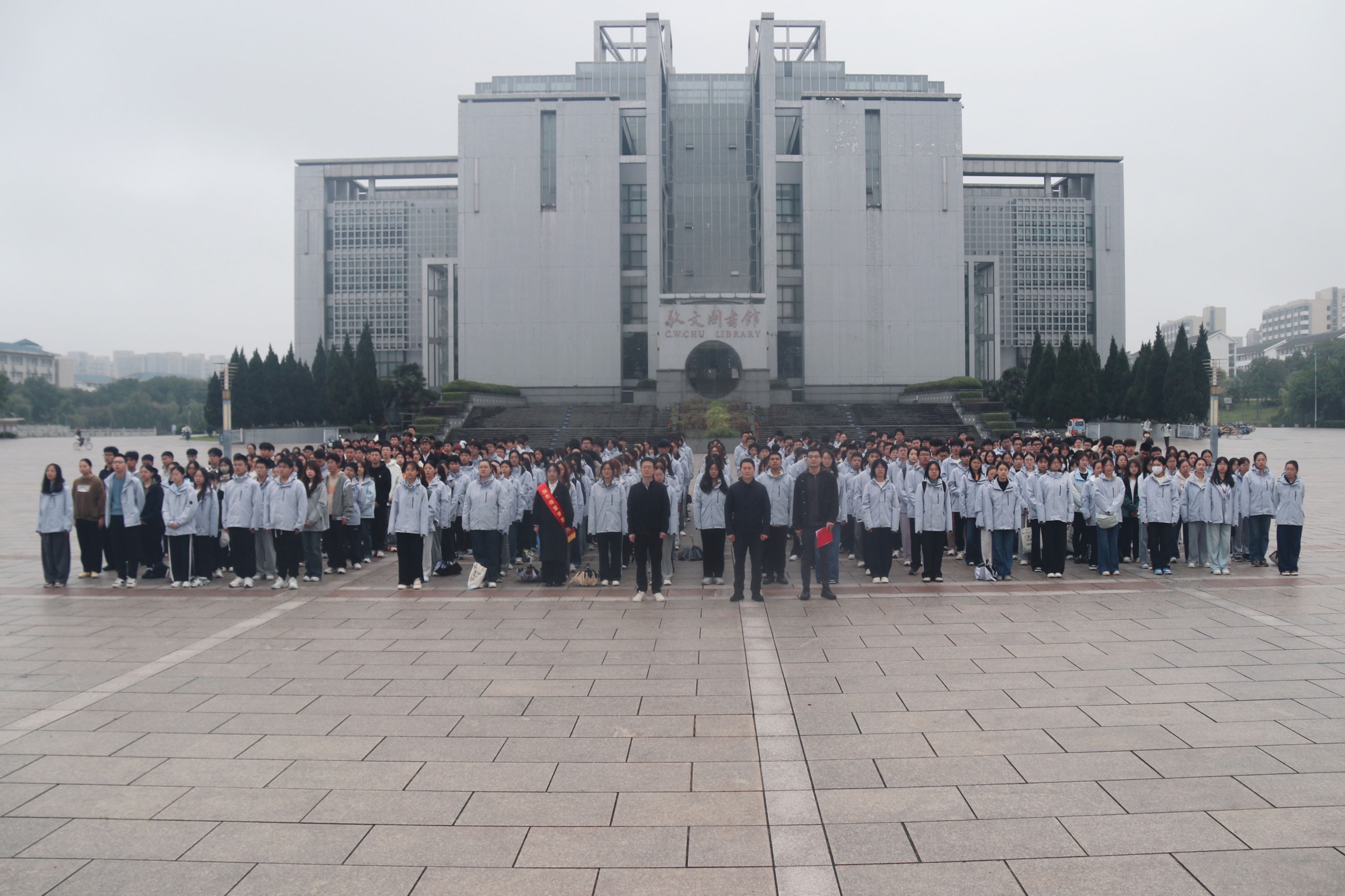 10月31日清晨,数学与统计学院在花津校区敬文图书馆东侧广场举行2025级本科生“国旗下的思政课”主题升国旗活动。学院党委副书记芮先红,全体2025级本科生辅导员,学院先锋宣讲团成员姚嘉悦及2025级全体本科生共同参与活动。