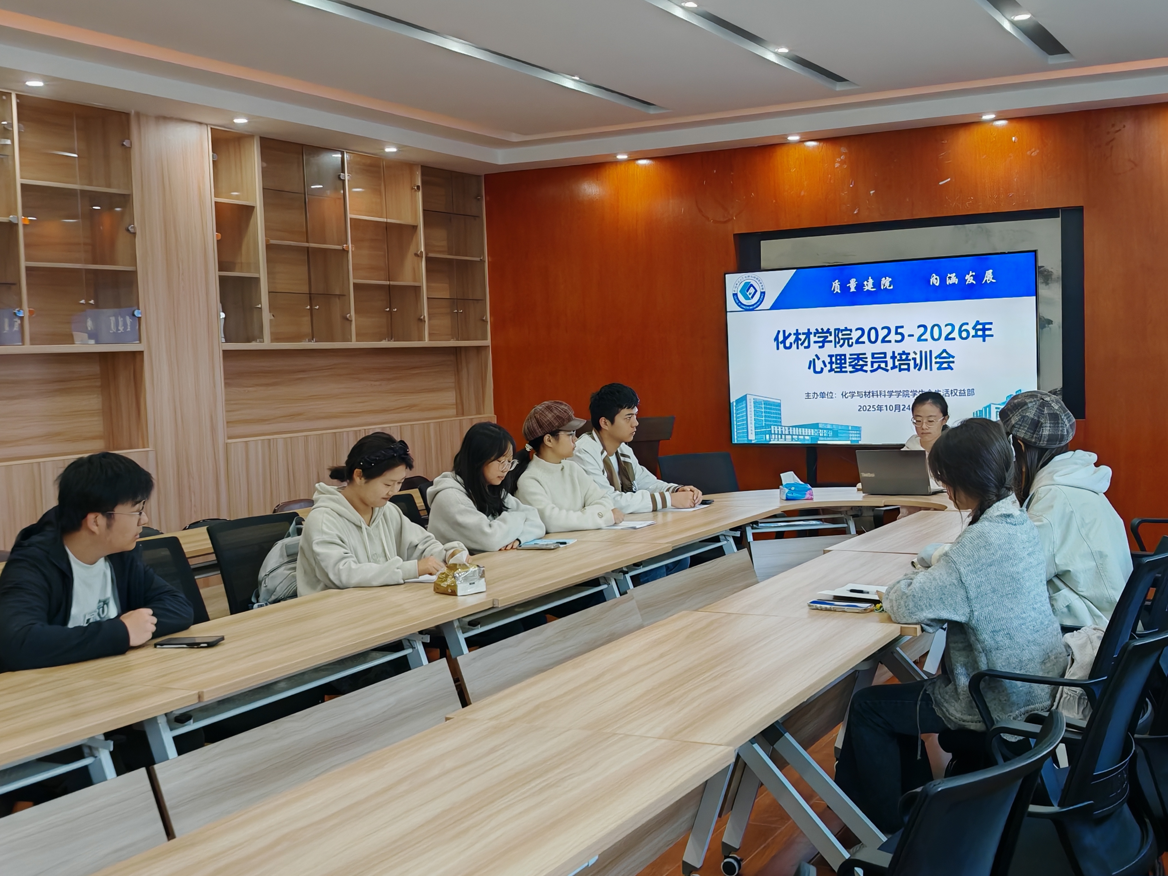 明责育心,用心护航。10月24日,化材学院学生会生活权益部面向新一届心理委员开展了一次专题培训。培训过程中,重点介绍了心理委员在班级中的定位、日常工作要点以及在处理心理相关事务时需要注意的方式与方法。同时,也为心理委员们提供了可操作的工作流程与实践指引,帮助他们在今后的主题班会及系列心理活动中更高效、更有力地开展工作。此次培训为后续心理健康教育工作的顺利推进提供了必要的理论支持与组织保障。