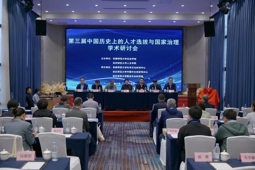 11月7日至9日,由安徽师范大学历史学院与安庆师范大学人文学院联合主办,安徽师范大学科举文化研究中心、安庆师范大学中国中古史研究中心、安庆师范大学廉洁文化研究院承办的第三届“中国历史上的人才选拔与国家治理”学术研讨会在安徽安庆举行。来自中国社会科学院、复旦大学、山东大学、华东师范大学、中国政法大学、暨南大学、上海大学、河南大学、山东社会科学院、上海应用技术大学、广州大学等全国众多知名高校和科研院所的60余名专家学者与会。
