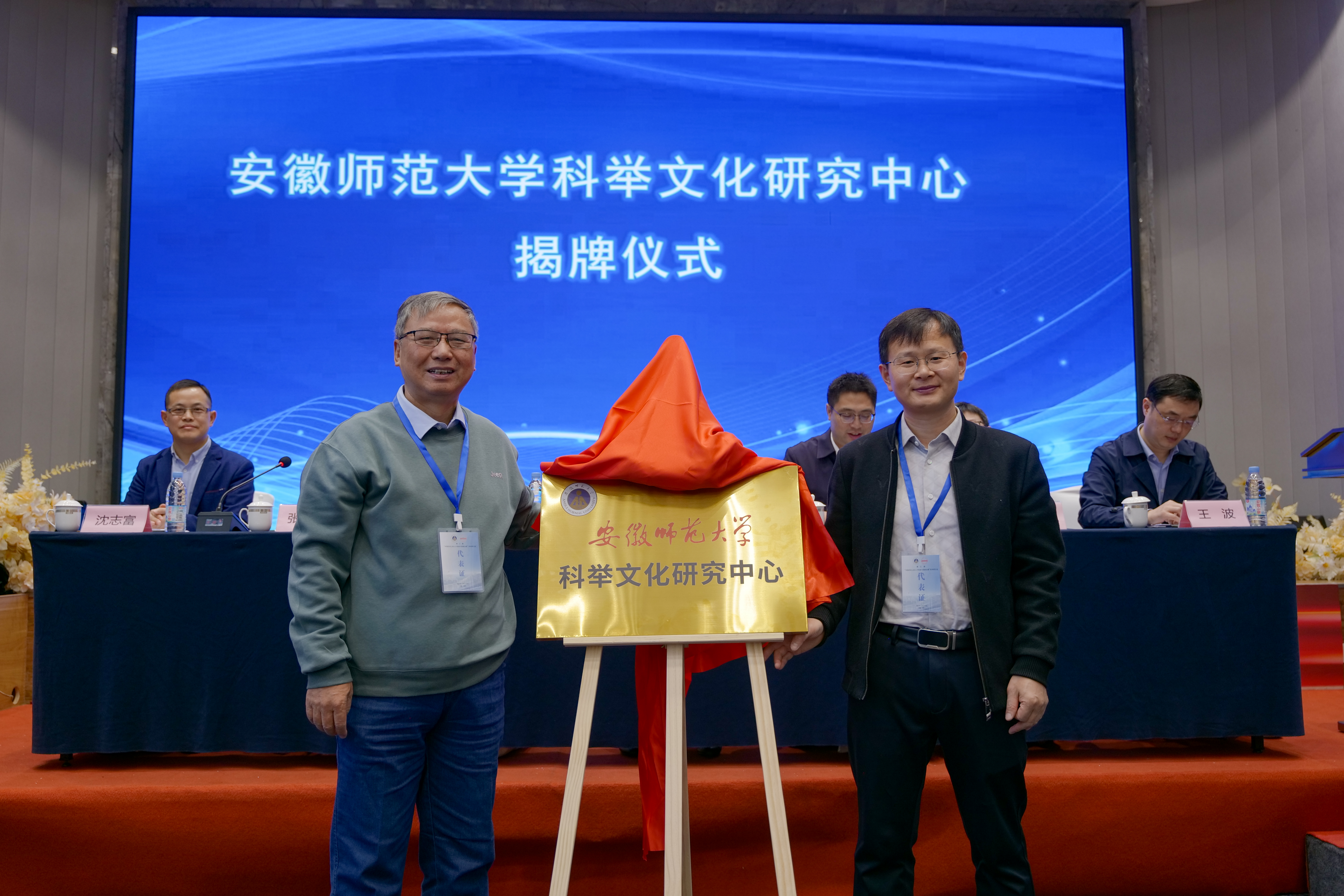 开幕式由安庆师范大学人文学院副院长沈志富主持。安庆师范大学校长彭凤莲、安庆师范大学人文学院党委书记王波、安徽师范大学历史学院党委书记廖仲明、安徽师范大学历史学院副院长丁修真等分别致辞。彭凤莲向与会专家学者表示热烈欢迎,期待通过此次学术活动进一步增强安徽师大和安庆师大历史学科合作,推动相关研究走向深入,产出更多共建共享成果。开幕式期间,举行了“安徽师范大学科举文化研究中心”揭牌仪式,安徽师范大学历史学院张振国教授代表中心致辞,介绍了科研平台创建背景、核心目标和未来规划。