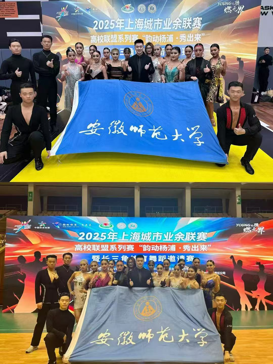 近日,2025年上海城市高校联盟系列赛“韵动杨浦·秀出来”暨长三角体育舞蹈邀请赛在上海市杨浦区圆满收官。赛事由上海市体育局、上海市教育委员会等单位主办,上海体育大学艺术学院等承办,汇聚长三角多所高校体育舞蹈精英同台竞技。我校体育学院代表队凭借扎实功底与稳定发挥脱颖而出,最终斩获冠军3项、亚军5项,季军4项,特别是在拉丁双A组最高组别项目中强势发挥,成为赛场焦点。