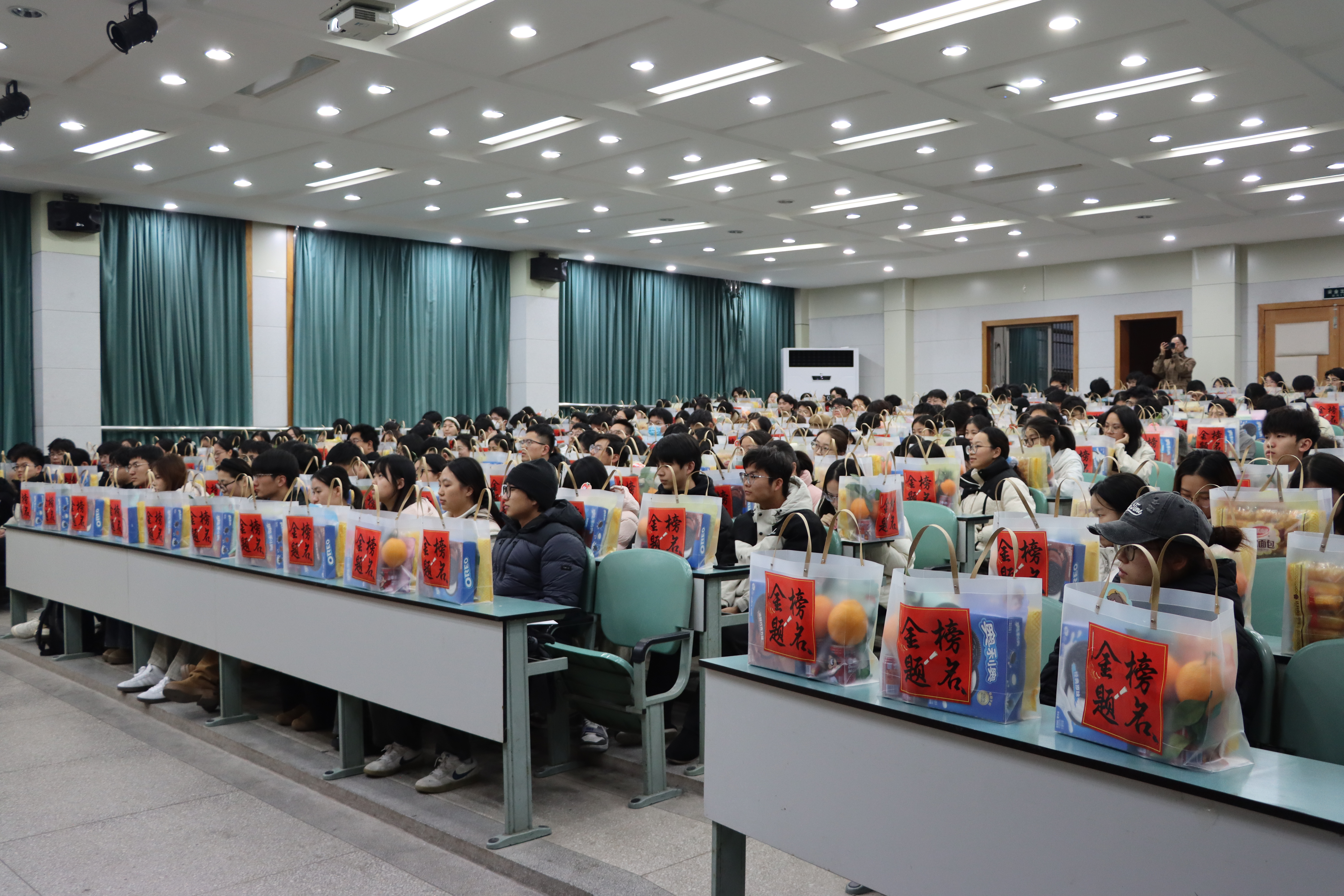 大会最后,学院领导老师共同为考研学子发放考研冲刺暖心礼包,表达学院的深切关怀与诚挚祝愿。