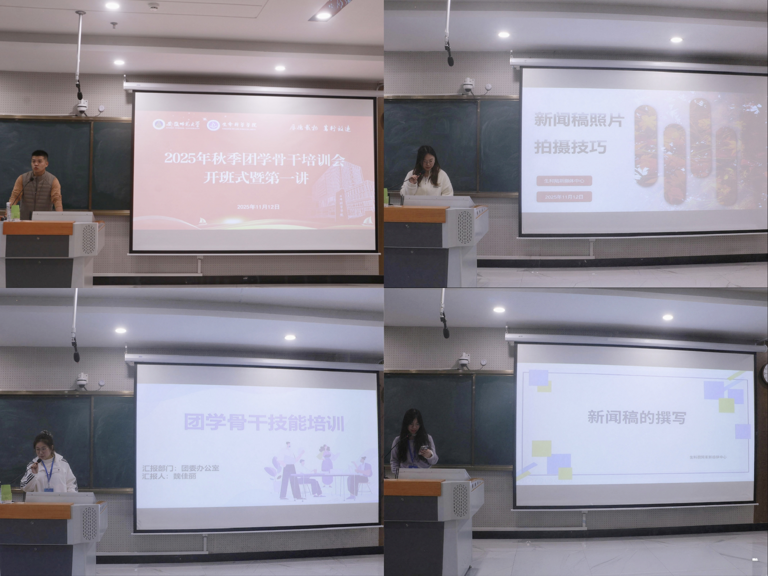 培训第二讲围绕学生干部实务能力培训展开。学院团委办公室部长魏佳丽系统讲解了办公软件应用技巧与报账工作规范,帮助学员掌握日常工作的标准流程与细节要求。新媒体中心编辑部部长吴思涵、摄影部部长张池结合鲜活案例,分享了新闻稿撰写要点与活动拍摄技巧,帮助学员提升宣传表达与视觉呈现能力。素质拓展部部长石京晶聚焦于第二课堂建设,解读学分认定、活动组织等关键内容,强化了学员的活动策划与执行能力。魏泽坤要求团学骨干以严谨的态度对待每一项工作,努力做到“事事有回应、件件有着落”,切实发挥榜样带头作用。