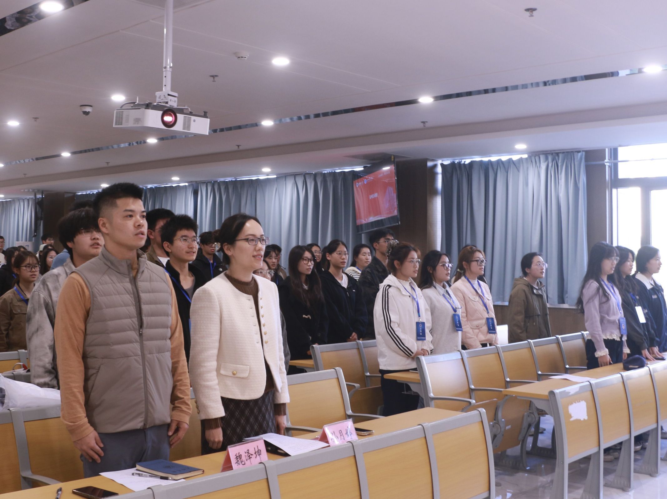 开班仪式在庄严的国歌声中拉开帷幕。魏泽坤宣读本届团委、学生会主要负责人及部门负责人名单。孙月婷开班讲话时指出,学生干部是学院联系广大同学的桥梁纽带,是推动学院各项工作落实的重要力量,要时刻以高标准严格要求自己,做思想引领的“排头兵”、全面发展的“先锋队”、同学信赖的“贴心人”、严于律己的“示范者”。她勉励大家珍惜学习机会,做到学以致用、知行合一,在实践中提升能力、在服务中锤炼品格。