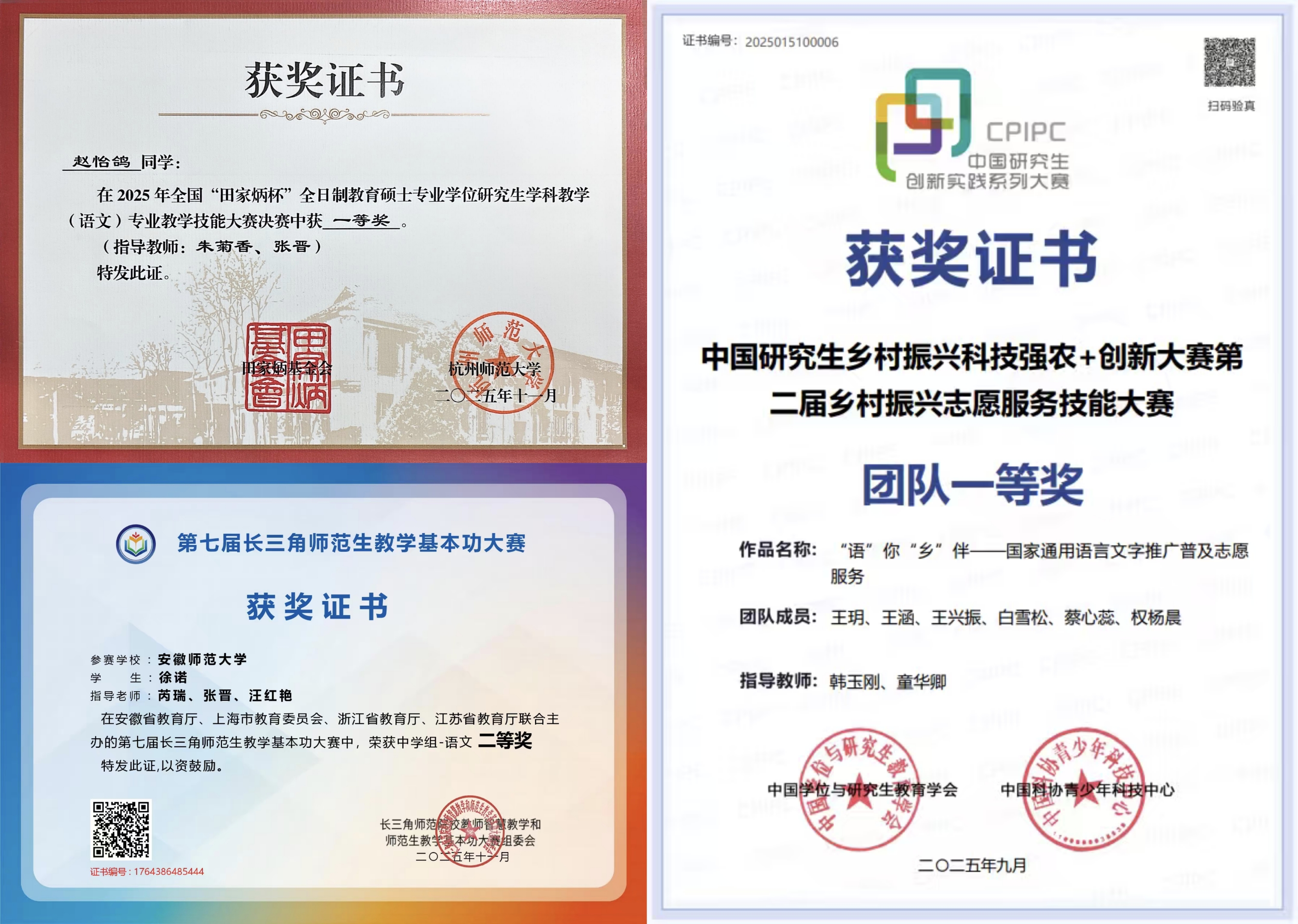 这一年,学院厚植师范教育底色,以卓越技能擦亮人才培养品牌。学院始终坚守师范教育本色,持续强化师范生技能培养。连续第十一年召开“六卓越一拔尖”语文教育专题研讨会,常态化举办学科教学语文名师讲坛,深化与安徽省教科院及省内外教师教育一线的交流合作,为师范生成长赋能。在各类教学技能赛事中,学子们屡创佳绩,2人分获全国“田家炳杯”全日制教育硕士专业学位研究生教学技能大赛一等奖、三等奖,1人获第十一届“田家炳杯”全国师范院校师范生教学技能竞赛三等奖,13人在2025年省师范生技能竞赛、长三角师范生教学基本功大赛等专项赛事中斩获一、二等奖;1人荣获中国研究生第二届乡村振兴志愿服务项目大赛全国一等奖,推动人才培养与社会需求紧密对接。招生就业质量实现新提升,2025年学院本科生招生录取分数线连续两年位居全校文科首位,2025届毕业研究生和汉语言文学(师范)专业本科生初次去向落实率分别达到97.27%、95.54%,均创历史新高,实现了招生与就业的良性循环,为学子未来发展筑牢坚实基础。