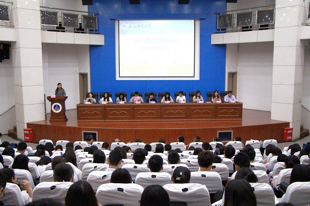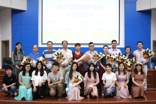在庄严肃穆的国歌中,报告会正式拉开了序幕。会议伊始,学院党委副书记李海燕代表学院向四年里为了学生成长成才一直默默付出着的老师和家长们表示感谢,并对学院2017届毕业生致以最真挚的祝福。随后,十名优秀毕业生分别从大学期间的学习、生活、学生工作等方面与低年级学生分享了自己的体会和感悟。