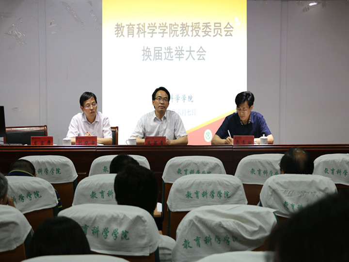 ,教育科学学院在学院三楼学术交流中心召开教授委员会换届选举大会。校教授委员会副主任委员