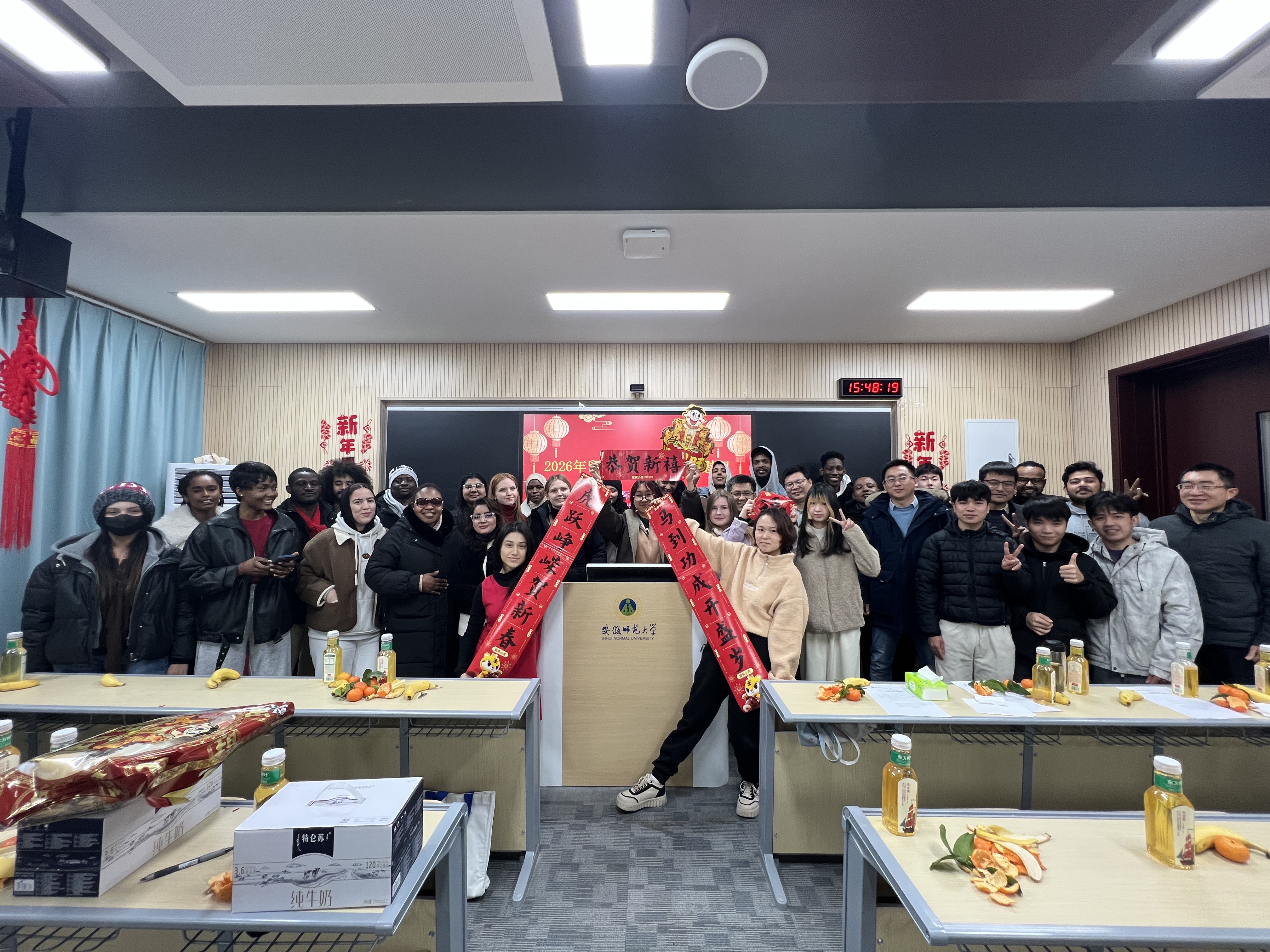 在农历春节来临前,国际教育学院在望道楼A座304教室举行2026年寒假留校国际学生新春慰问会。慰问会由学院副院长徐建主持,学院班子成员、教师代表,国际交流与合作处负责人与留校国际学生代表欢聚一堂,共迎新春。
