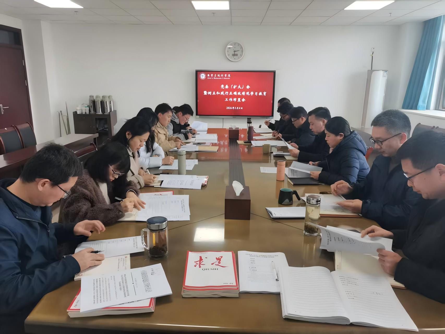 3月9日下午,数统学院在学院C410会议室召开学院党委(扩大)会议,布置启动树立和践行正确政绩观学习教育。学院党委委员、纪委委员、副处级组织员、各党支部书记参加会议。会议由院党委书记黄友生主持。