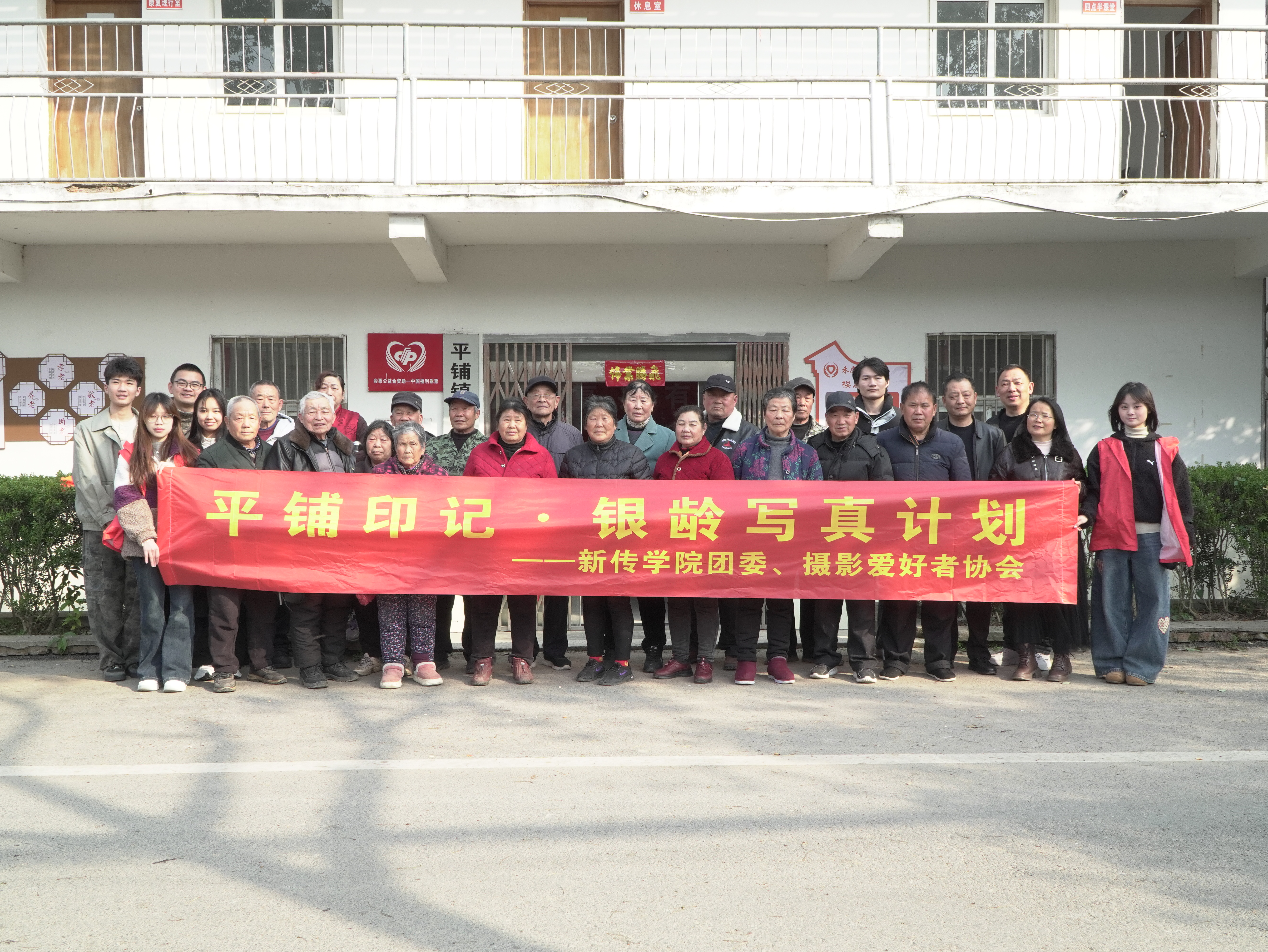 活动当天,来自影视摄影与制作专业的5名志愿者,中午一下课便从学校出发,乘车赶往平铺镇。抵达现场后,大家在驻村书记陈健及村干部的协助下,快速用红绸布置出临时摄影点,为拍摄做好准备。得知要免费拍照,老人们热情高涨、踊跃前来。在志愿者吕赐娴的细心引导下,大家有序排队等候。志愿者刘芦蕊、钱依梦耐心帮老人们整理衣装、调整姿势,让每位老人都以最好的状态出镜。拍摄时,志愿者吕赐娴、赵德如主动与老人拉家常,现场气氛轻松融洽。原本略显拘谨的老人们慢慢放下拘束,脸上露出了真诚自然的笑容。拍摄一结束,郭子银立刻对照片进行挑选与简易修图,现场打印并亲手送到老人手中。拿到照片的老人们满脸喜悦,连连向志愿者们道谢,温暖的画面定格在乡间。