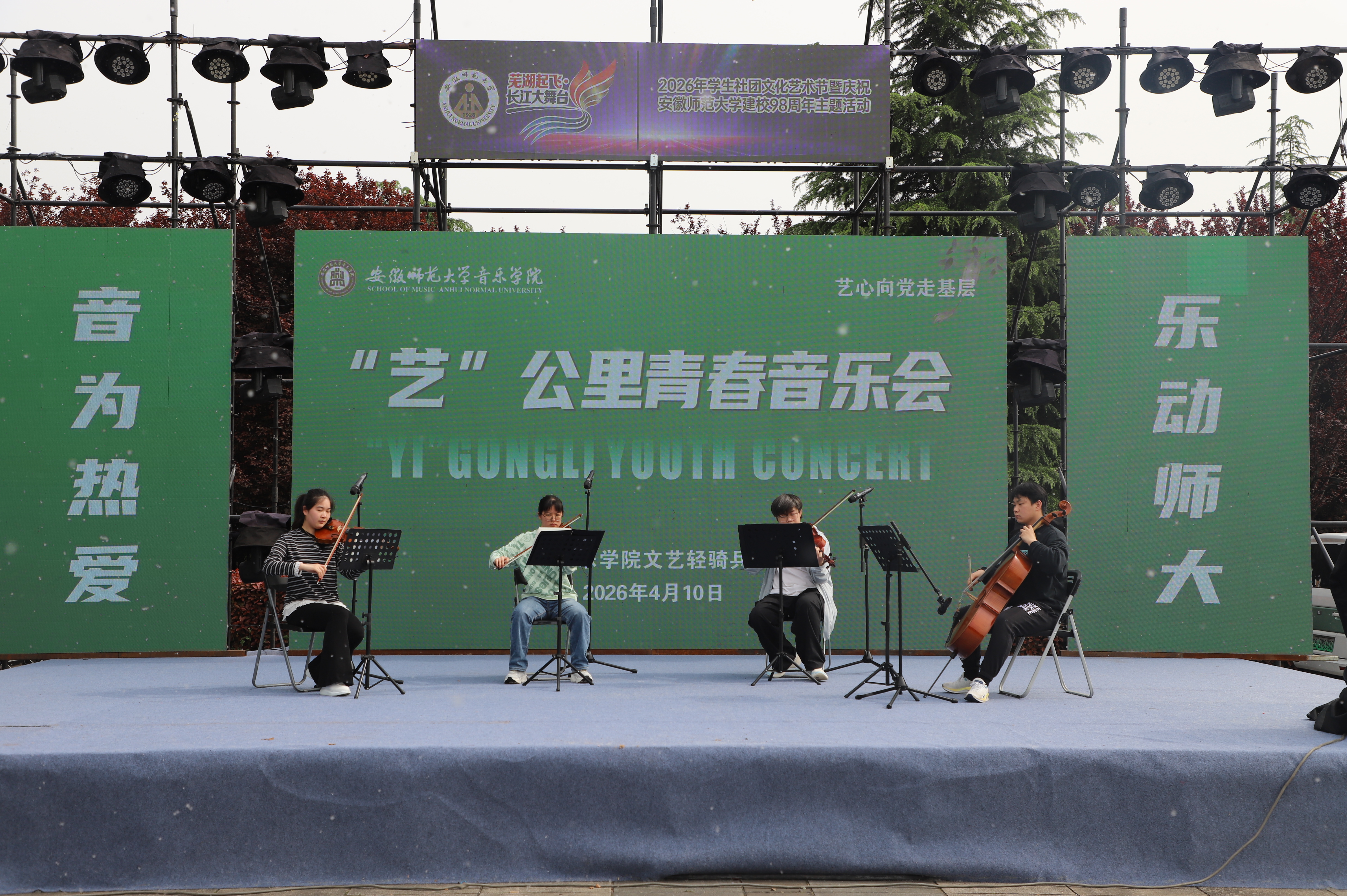 为热烈庆祝安徽师范大学建校98周年,4月10日下午,由音乐学院精心策划的“艺”公里青春音乐会在花津校区津南草坪旁温情上演。音乐学院师生以天为幕,以地为台,用一场别开生面的音乐盛宴为母校献上最真挚的生日祝福,也为全校师生带来了一场浸润心灵的艺术洗礼。