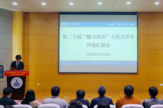 以奋斗致青春,以实干铸菁英。为贯彻落实“五育并举”育人理念,发挥优秀青年学子的榜样作用,4月15日晚,经管学院第二十届“魅力菁英”十佳大学生评选汇报会在赭山校区田家炳楼报告厅举行。经管学院党委副书记陈刚锋、数字经济系主任谭卫民、院团委书记吕洋和全体专兼职辅导员担任本次汇报会评委。经管学院2025级各专业学生代表现场观摩学习。