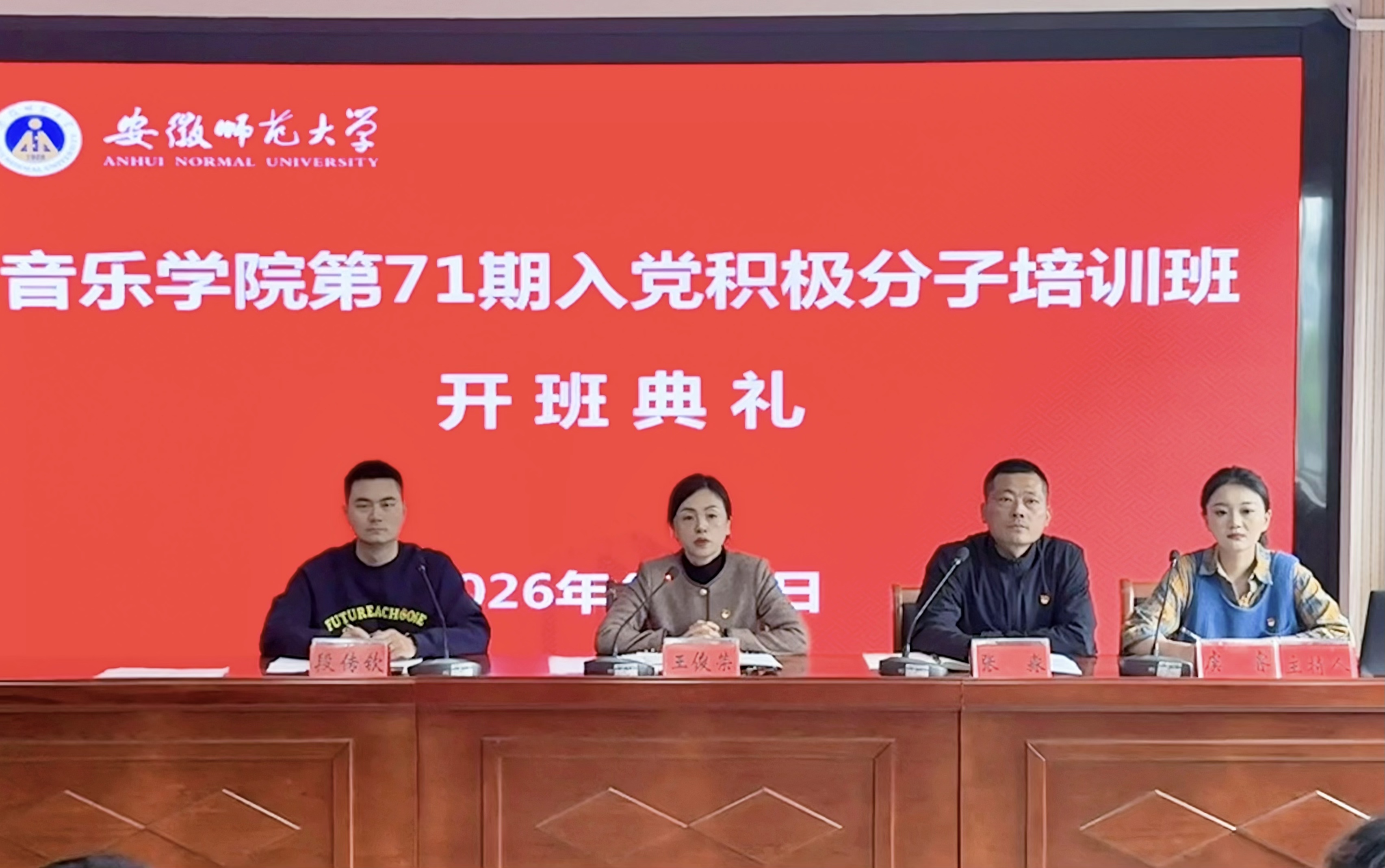 18日至19日,培训班集中安排系列专题党课。校党委宣传部副部长田超以《学习贯彻习近平文化思想培塑青年网络文明素养》为题作专题讲解;马克思主义学院副院长杨希作《青年大学生的使命担当》辅导报告;音乐学院党委秘书张淼深入解读入党的条件和流程——学习《中国共产党发展党员工作细则》;2026央视马年春晚合肥分会场参演人员、音乐学院学生党员张亚楠,以《以舞为媒,以心向党——从春晚舞台看青年党员的使命与担当》为题,分享了作为一名学生党员为校添彩的生动事迹。