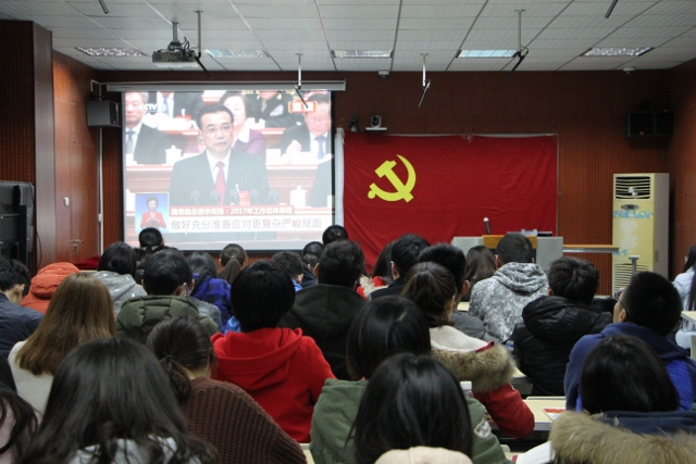 会后,全体与会人员集体观看李克强总理《2017年政府工作报告》。