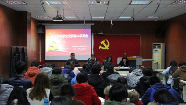 (环工学院 文/李霞光 图/高嘉育)3月9日晚,在学院行政楼一楼会议室召开学生党员集中学习会。学院党委副书记杨友谊、各专业党支部书记、全体学生党员参加会议,会议由食品质量与安全专业本科生党支部书记陈亚力主持。