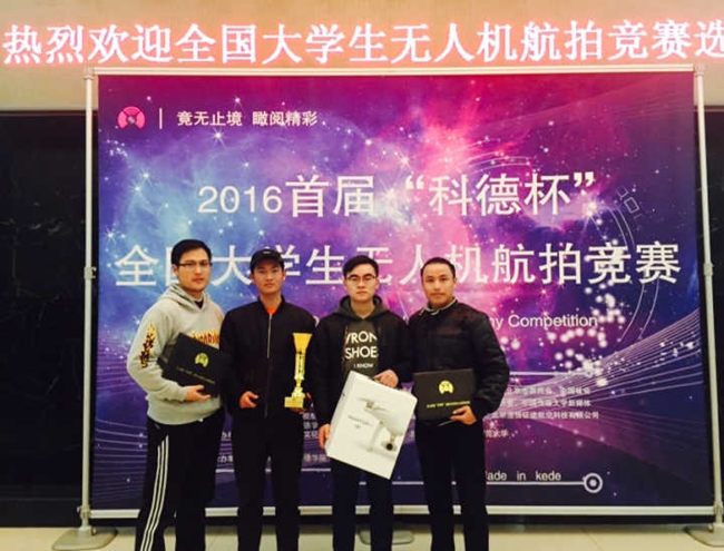 本网讯(新闻与传播学院)在刚落下帷幕的2016首届全国大学生无人机航拍竞赛中,新传学子聂朝鑫、杨陆城的影视作品《冬日起飞》以巧妙的构思、精湛的拍摄、唯美的画面荣获一等奖殊荣,并被授予了代表此次竞赛唯一最高声誉的“科德杯”。周仁熊、倪博昊的视频短片《EXPLORE》和组图《王的山田》分获三等奖。