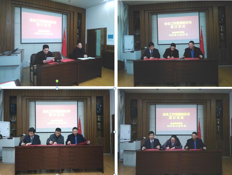 理论学习后,学院领导班子签署了安全工作管理责任书,分管领导和相应责任人也签署了安全工作管理责任书。