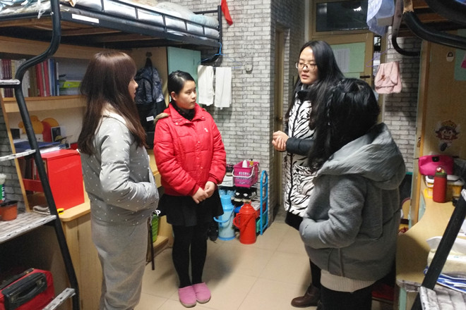 安全无小事,行动除隐患。文学院一直致力于构建由学院领导班子、学工队伍、学生组织、班级等多级联动的宿舍安全网络体系,切实增强学生宿舍安全防范意识。12月20日下午,学院党政领导与辅导员深入学生宿舍一线,了解学生学习生活动态,细致排查宿舍安全隐患,耐心倾听、互动交流,要求同学们增强自我保护意识,提升自我防范能力。此前,各班级还成立了宿舍安全督导小组,由班长、生活委员、女生委员等组成的督导小组分批次对各班宿舍进行了安全排查,对宿舍中存在的安全隐患提出整改意见,并安排相关班委督导整改,充分发挥学生在安全工作中的“自我管理、自我教育、自我服务”功能。