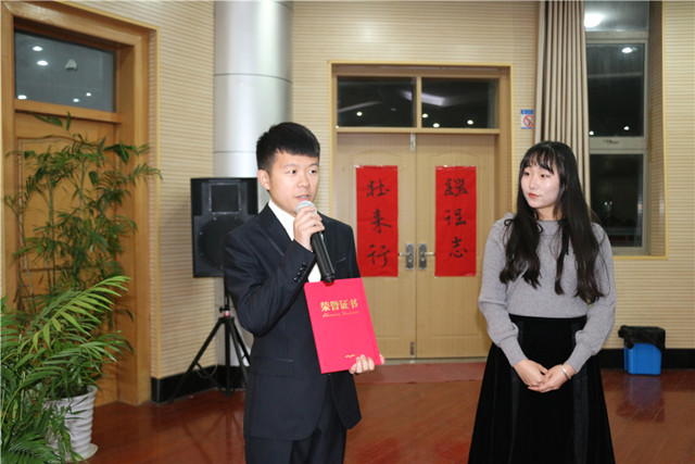 颁奖典礼上,与会领导老师宣读获奖人员名单,分别为先进集体和先进个人颁奖,证书寄托着学院的肯定与认可,饱含着老师的祝愿与期盼。各项获奖学生代表发表获奖感言,分享成长感悟和青春梦想,表示将继续勤学修德,明辨笃实,初心不忘、情怀不移、奋斗不息。