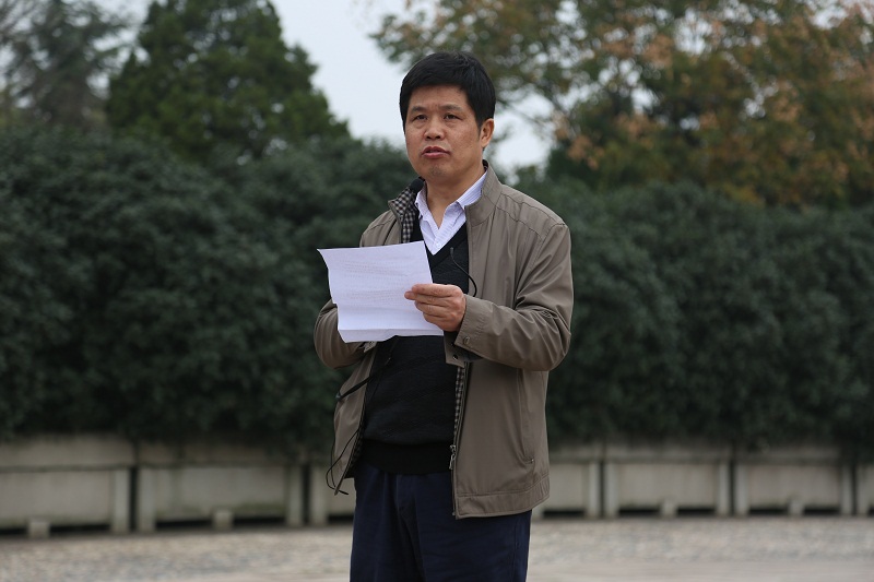 全体师生在雨花台革命烈士纪念碑下举行了瞻仰、献花、默哀等仪式,礼毕后由蒋学波书记发表讲话。蒋书记指出,是英烈们坚定的信仰和无私的奉献,给了我们幸福和平的生活、安宁的学习环境、和谐的社会氛围;希望同学们能踏着先辈们的足迹,肩负起中华民族伟大复兴的重担,用智慧和勤奋,把我们的祖国建设得更加美好、更加繁荣、更加昌盛!
