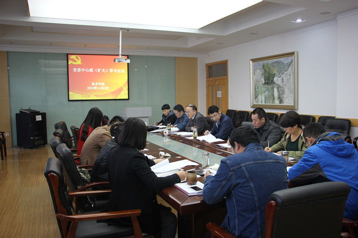 下午,美术学院党委中心组扩大学习会在学院会议室召开,院党委书记王继民主持会议,院党委委员和各支部书记参加。会议集体学习了中国共产党第十八届中央委员会第六次全体会议公报,传达学习了习近平在纪念红军长征80周年大会上的讲话精神。
