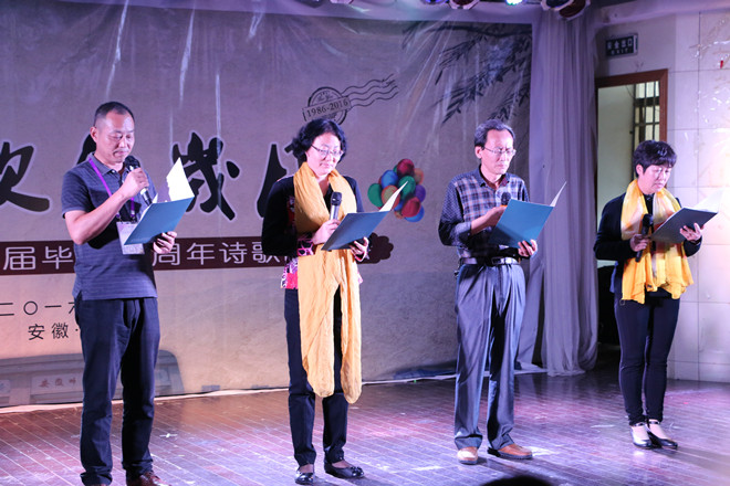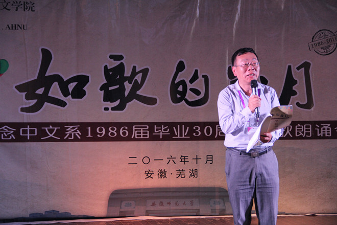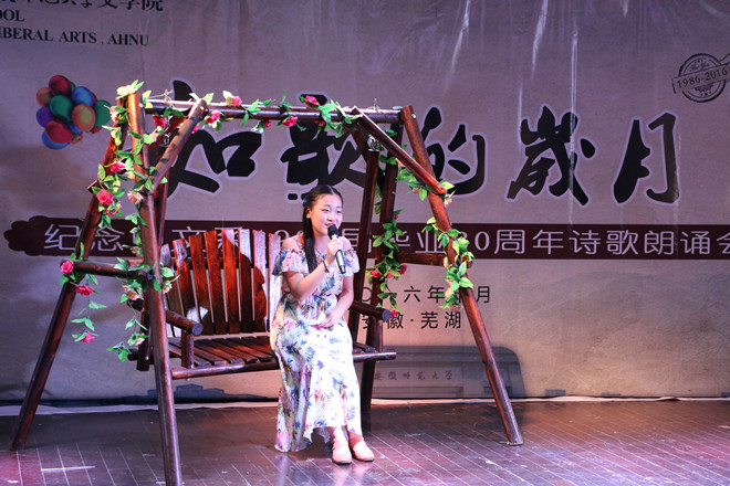 三十年前,怀抱着理想与曙光,82级的同学们一起度过了在师大的美好时光;三十年后,带着岁月留下的痕迹与成就,当初的同学们聚首重逢,迎接他们的是热情洋溢的师大新青年们。“如歌的岁月”诗文朗诵会主要选取了82级校友梁松涛、吴丽丽、李新、冯浩文、赵焰、左会斌、薛暮冬、吴根友、朱孟良、陈寿星等的原创诗文,分为三个篇章:“赭山脚下忆往昔:恰同学少年,风华正茂”、“故园离情追流年:思同门旧友,朝花夕拾”、“花津河畔看今朝:存海内知己,聚首重逢”。朗诵会由在校学生主持,校友与学生共同朗诵穿插进行。年华交错,现场师生在激情中唱响青春赞歌,在吟咏中彰显师大情怀。
