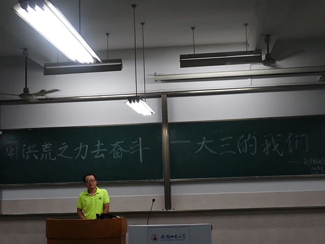 8月29日,《安徽2016下半年中小学教师资格考试(笔试)公告》规定,从2014年起新入学的师范类专业学生,申请教师资格须参加全省统一的中小学教师资格考试。学院2014级历史学辅导员宫超在8月31日即召开“用洪荒之力来奋斗——大三的我们”主题班会,着重强调教师资格统考这一新变化,详细解说考试规定内容,要求同学们不等不靠,放下思想包袱,告别传统思维,立即行动起来,争取在今年11月份一次性通过资格认证考试。