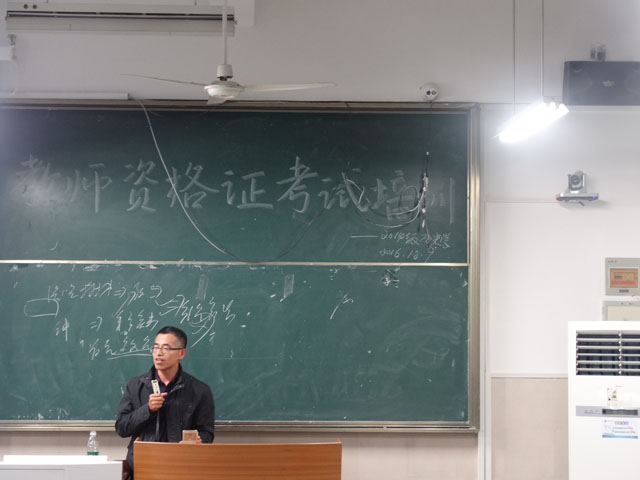 10月9日晚,学院在2040101号教室组织开展“2016年下半年教师资格证考试笔试培训会”启动仪式,师范生技能培训专家、历史学专业教师王彦章副教授等出席。首场培训会由具有丰富教师资格考试经验的金捷老师主讲,他为大家逐科解读考试内容分布,分析考试中存在的重点、难点,提醒同学们全面复习的同时也要抓住主要内容,有层次、有重点的展开备考。2014级历史学专业全体同学及2015级部分同学参加培训。
