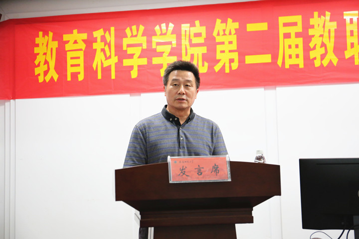 本网讯(教科院 黄引娣)建言献策谋发展,攻坚克难创新篇。9月28日下午,教育科学学院第二届教职工代表大会暨第五届工会会员代表大会在该院三楼学术交流中心召开。校党委常委、纪委书记程度,校工会副主席牧运前出席大会,大会正式代表、特邀代表、列席代表45人参加了大会。