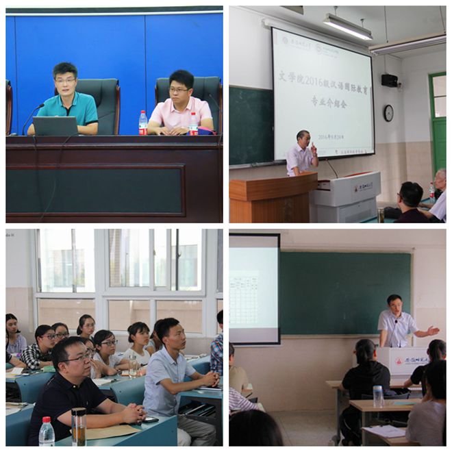 详实介绍,初识专业要领;温馨引领,开启学习之旅。开学典礼结束后,文学院2016级新生专业介绍会在敬文报告厅、行知楼2050202、2050501以及2030501A教室同时举行,文学院汉语言文学(师范)专业负责人项念东、汉语言文学(非师范)专业负责人饶宏泉、汉语国际教育专业负责人崔达送、潘晓军,秘书学专业负责人叶文举、戏剧影视文学专业负责人张华分别为各专业新生作专业介绍。他们从专业概况、专业建设、人才培养、教学设置、课程安排、学制学分等多方面为同学们进行详细介绍,并对新生提出学习上的要求和建议。