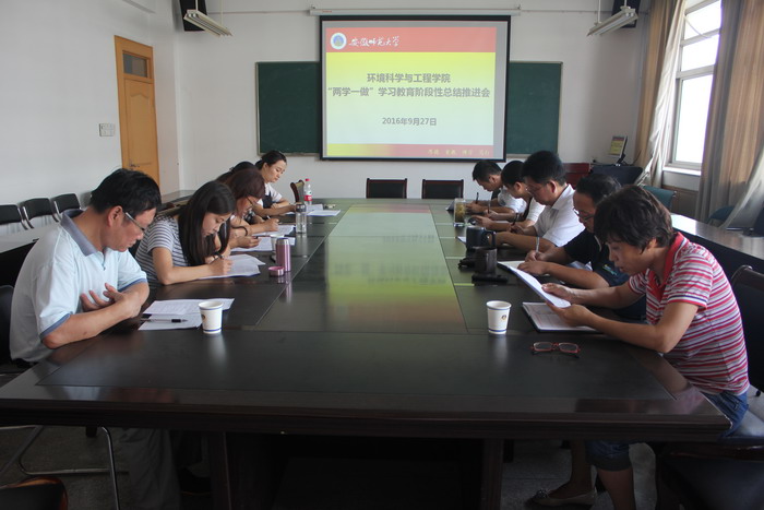 本网讯(环工学院党委)9月27日下午,环境科学与工程学院召开“两学一做”学习教育阶段性总结推进会,传达学习全省及学校“两学一做”学习教育工作推进会精神,总结交流学院前一阶段的工作开展情况,研究部署下一阶段任务。学院党委委员、全体党支部书记参加了会议,会议由学院党委书记王峰主持。